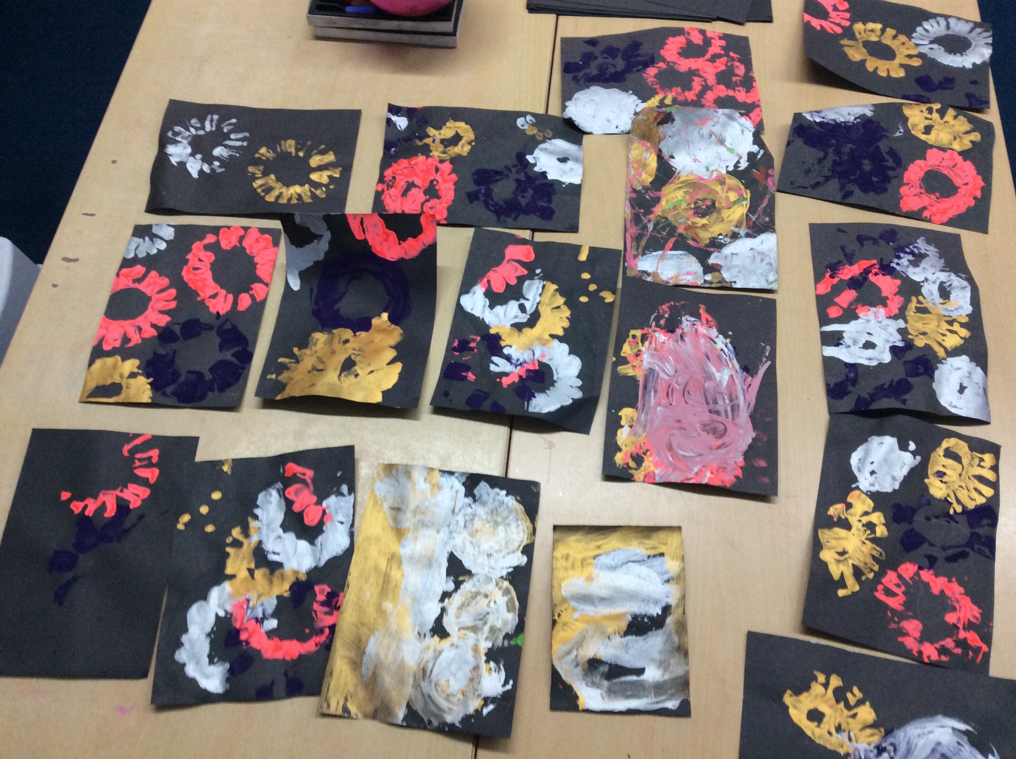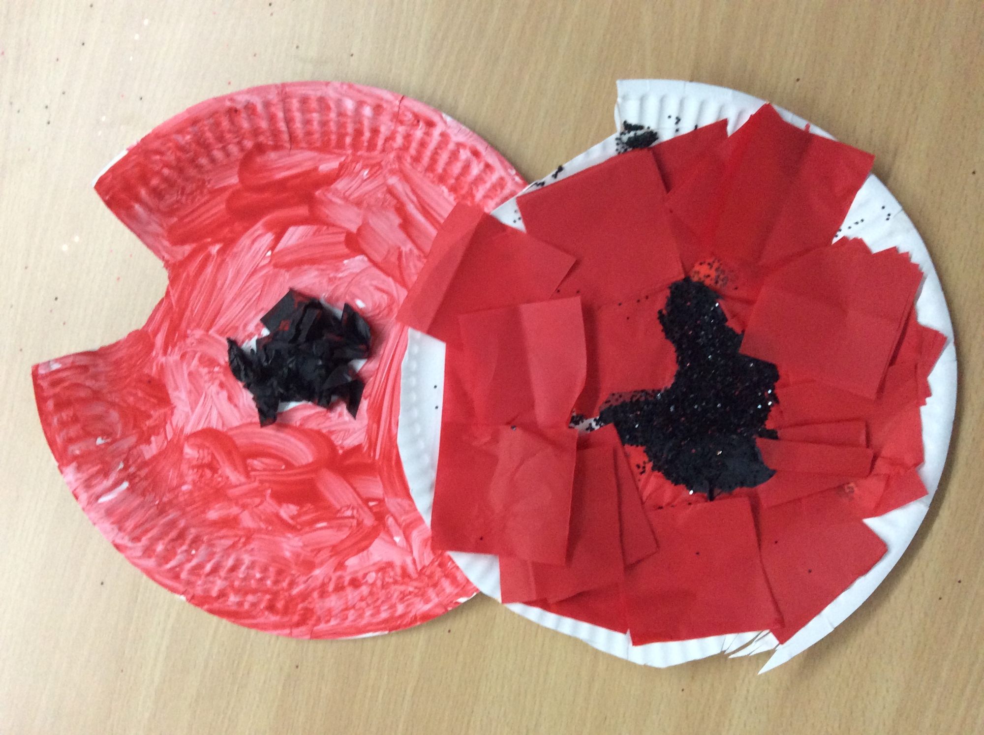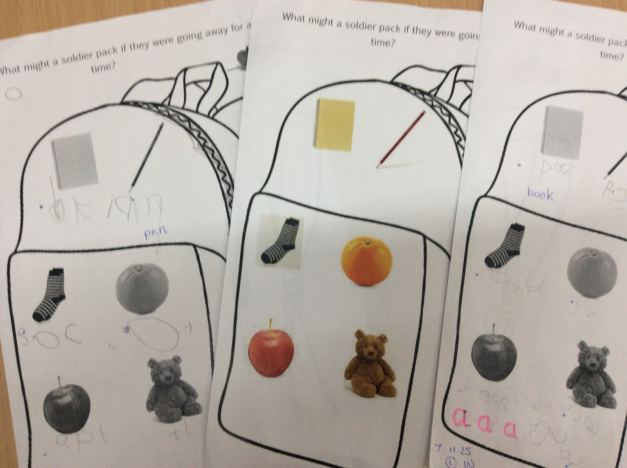 We wrote down a list of items that might be in a soldier's bag, learnt to crawl like a commando, drew and collaged poppies for remembrance and painted firework pictures.