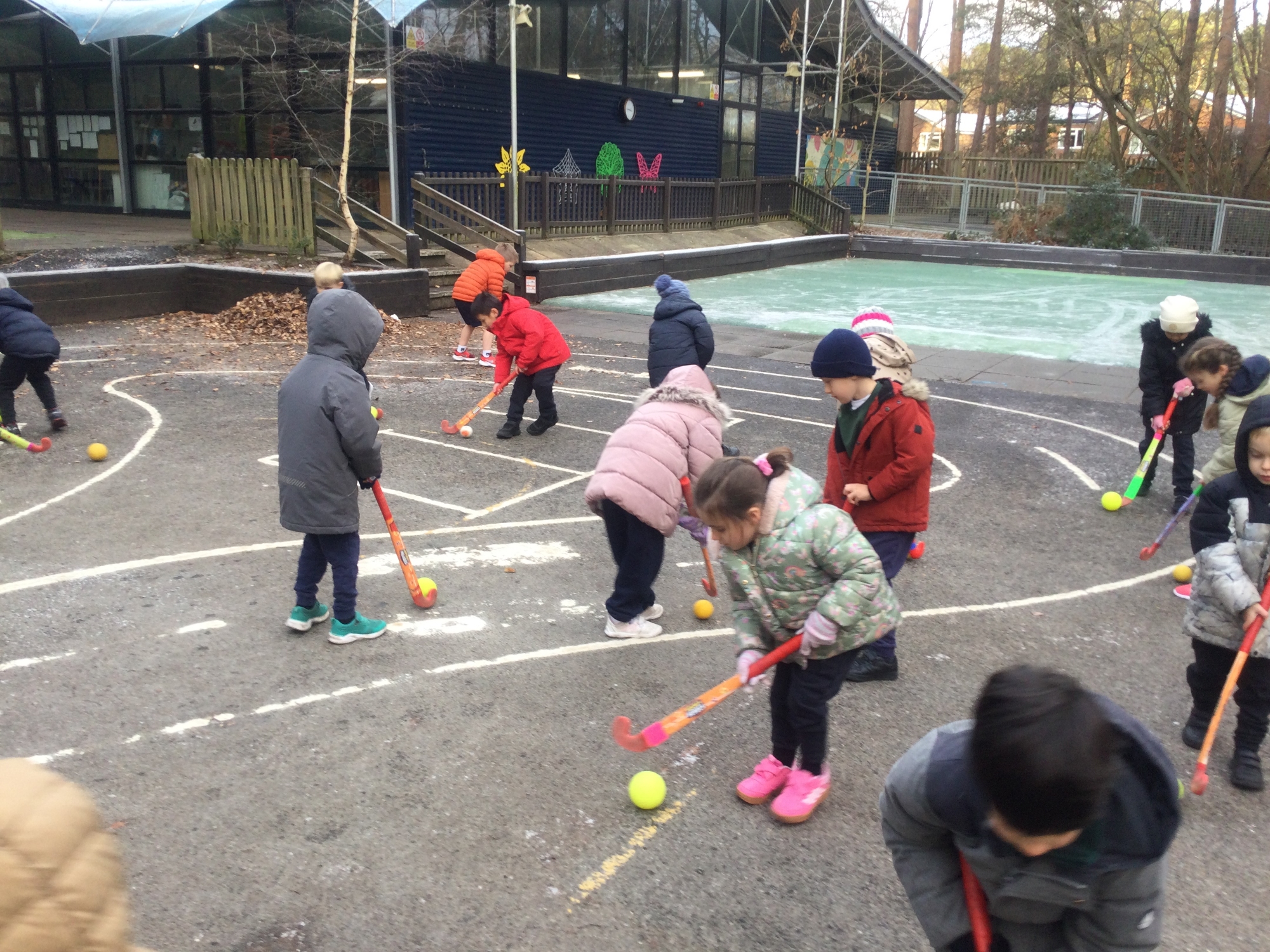 This half-term, we are lucky to have Angie Cottee from Silky Skills Hockey every Tuesday to coach the children. They are really enjoying this introduction to a new sport, even in the rain and snow! Already, they have learnt how to be 'hockey ready' by holding our hockey sticks correctly and looking up. We have learnt to travel with the ball, pass and turn to defend the ball. We even played our first matches in week 3! This is becoming one of our favourite weekly lessons.