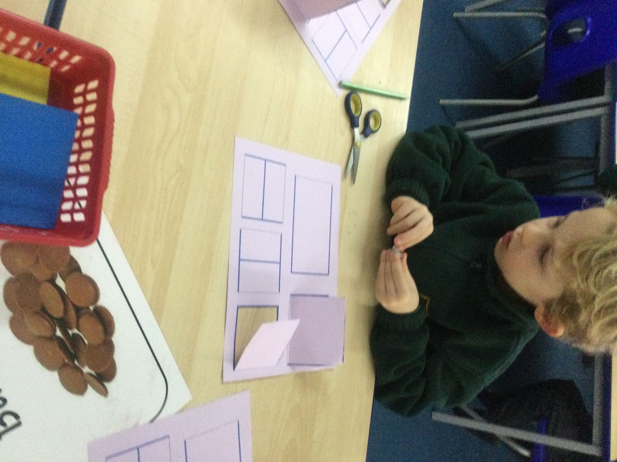 We have been using tens frames to practice our pairs of numbers within ten. We have been using part, part, whole frames (or cherry models) to practice our subtraction facts within ten. We found these really helpful so we could see the ways the numbers linked together.