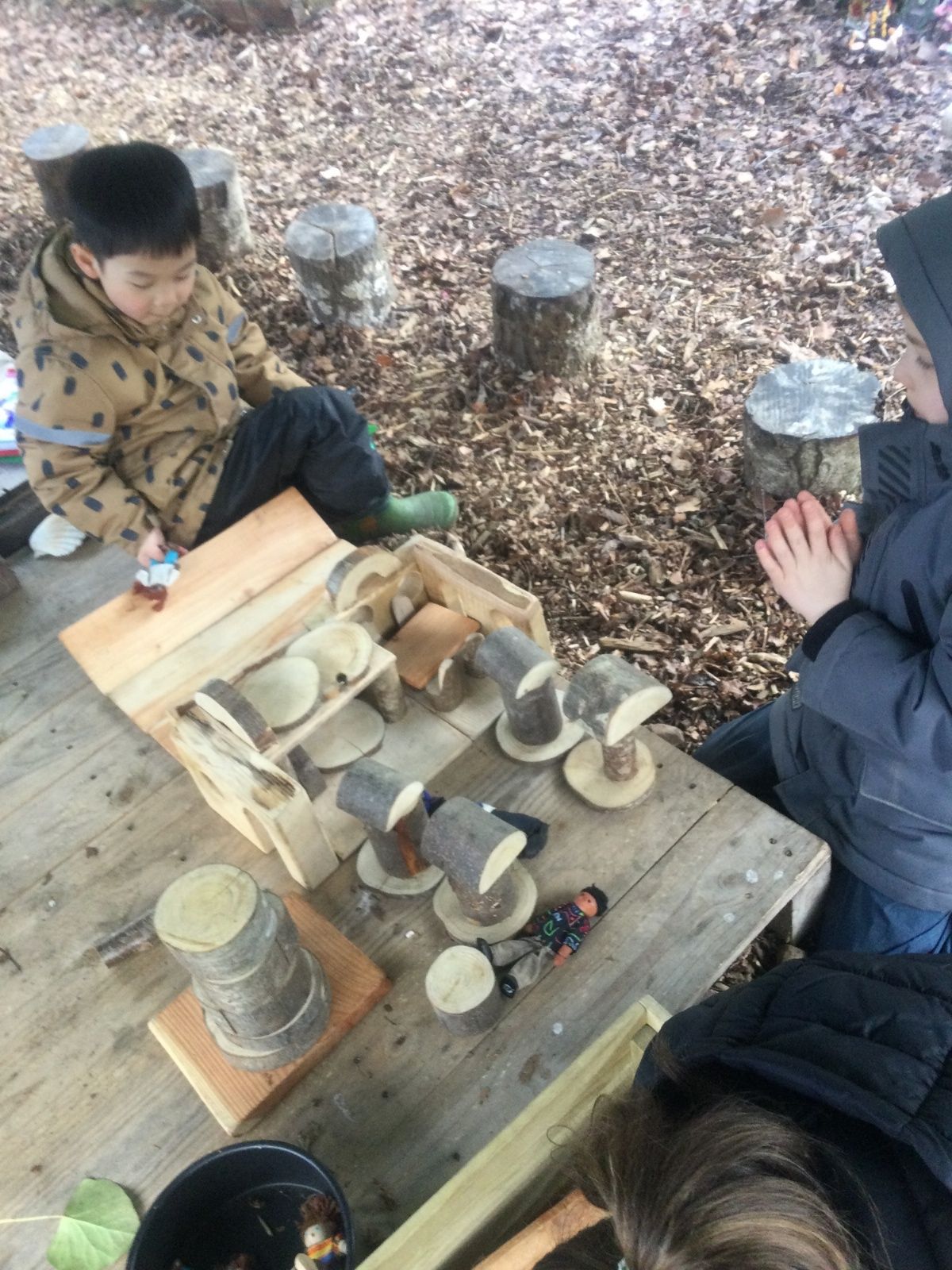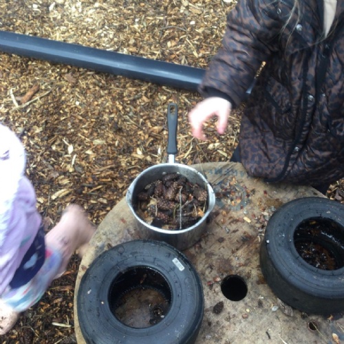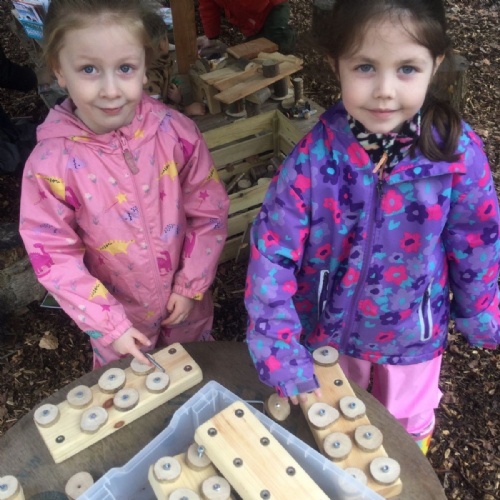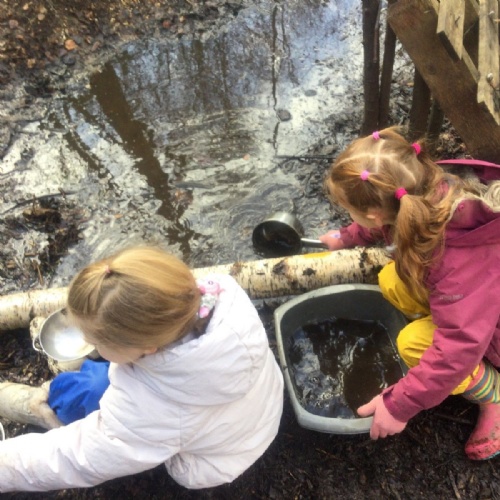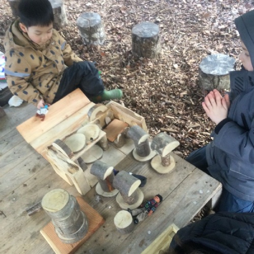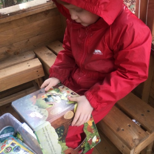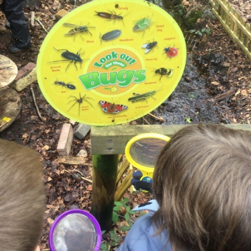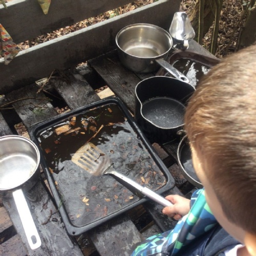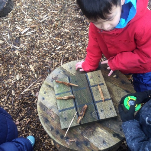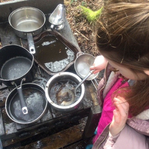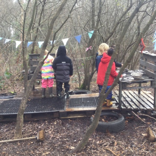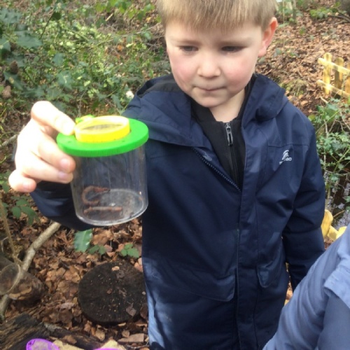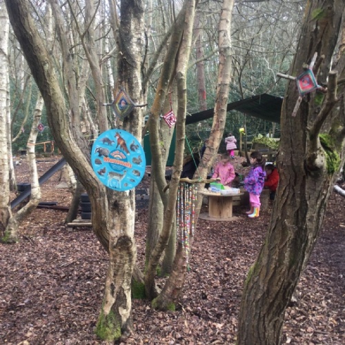 We love learning outside and our Forest School setting allows us to do just this. We learn about nature and the awe and wonder within our world. We identify the trees and animals in our surroundings and we think about how these things change across the seasons. We also play noughts and crosses, build dens, get baking in the mud kitchen and enjoy looking more closely in our environment.