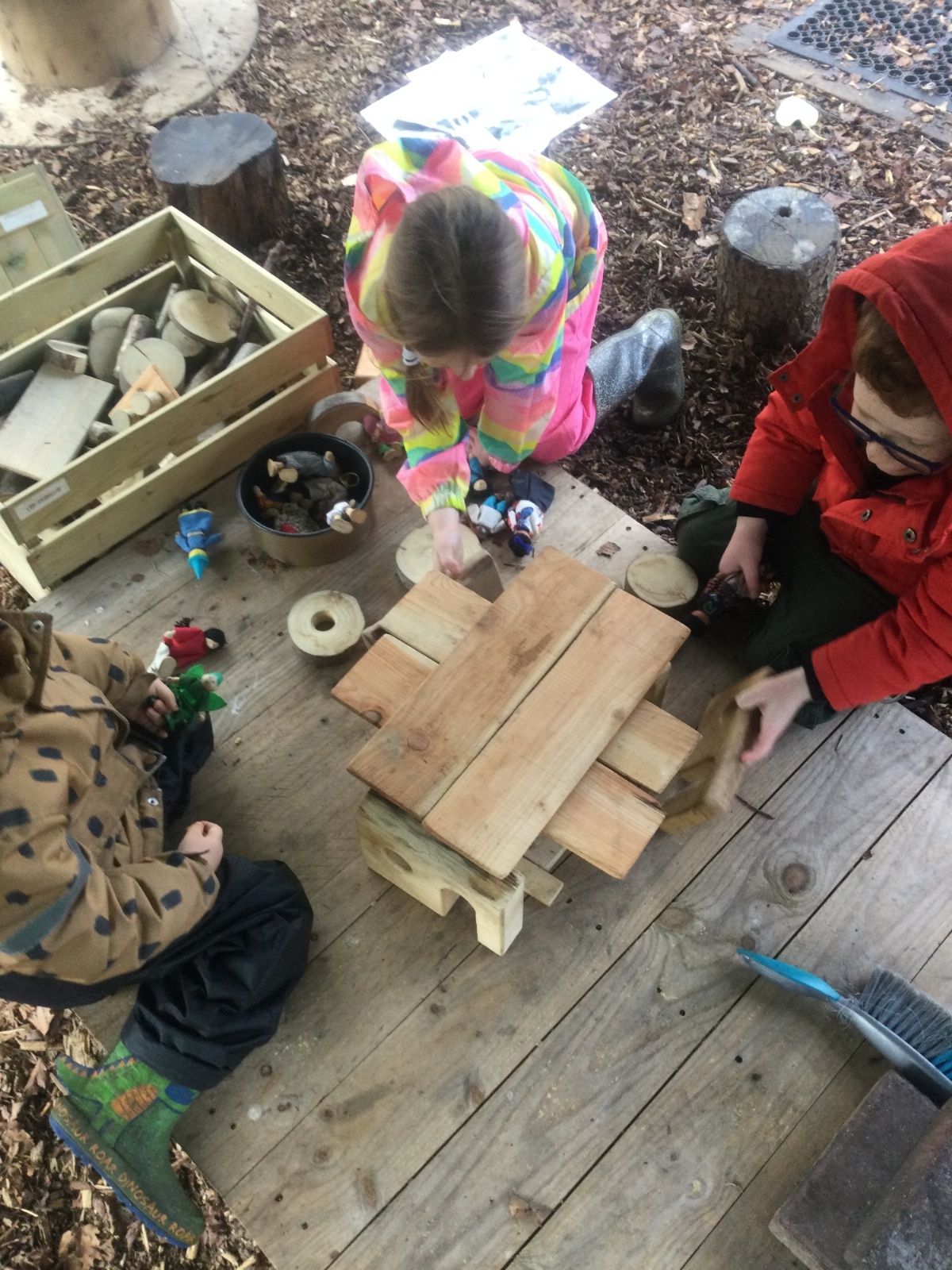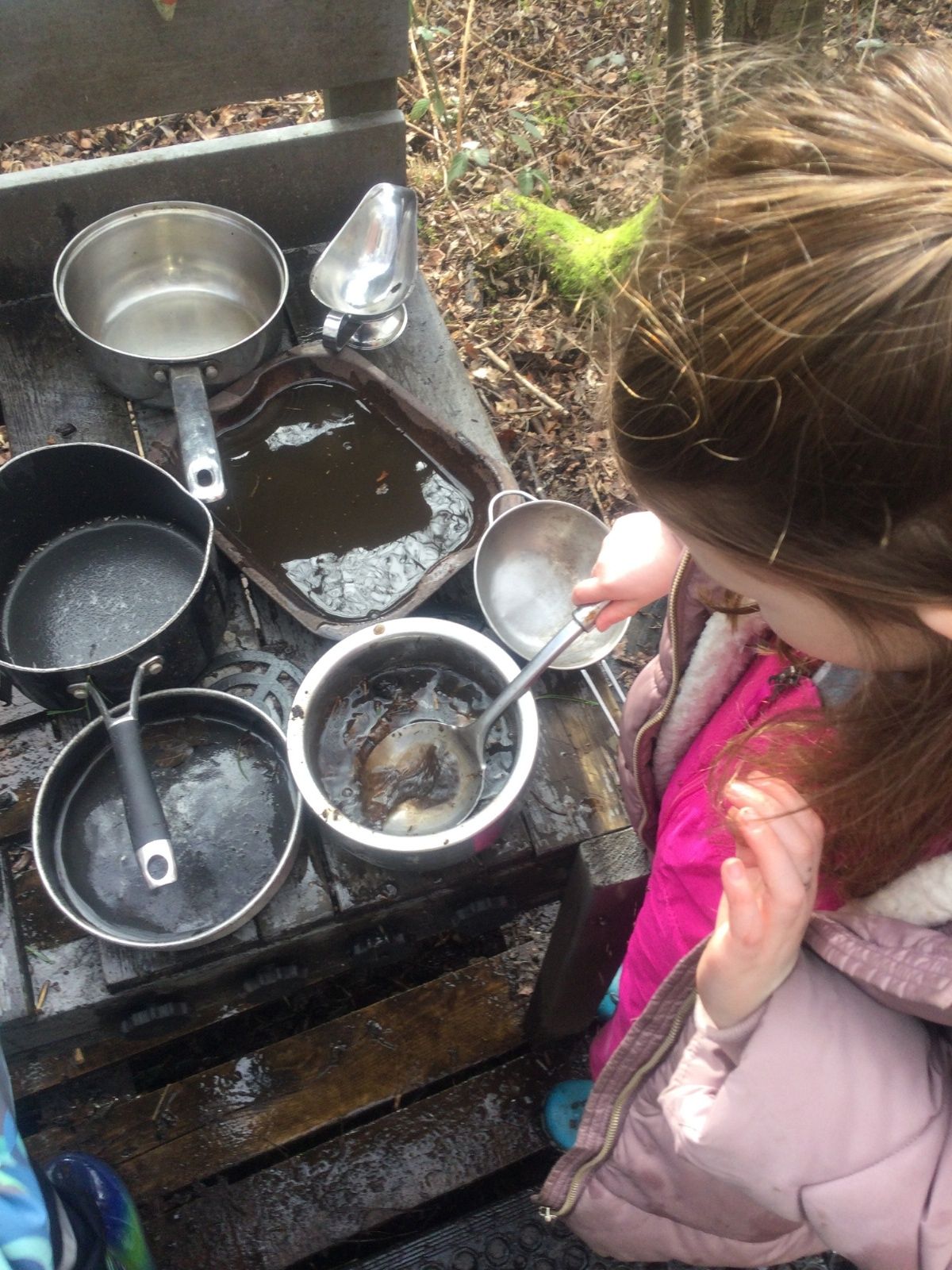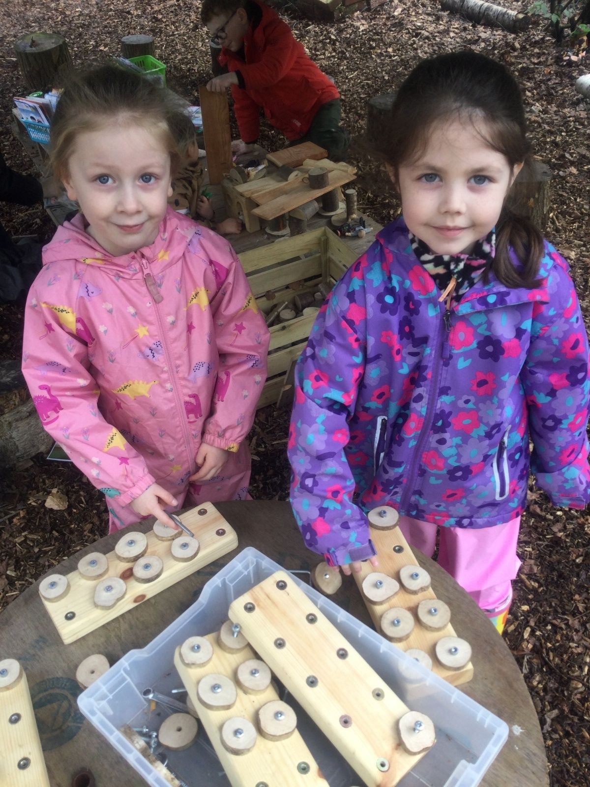 We love learning outside and our Forest School setting allows us to do just this. We learn about nature and the awe and wonder within our world. We identify the trees and animals in our surroundings and we think about how these things change across the seasons. We also play noughts and crosses, build dens, get baking in the mud kitchen and enjoy looking more closely in our environment.