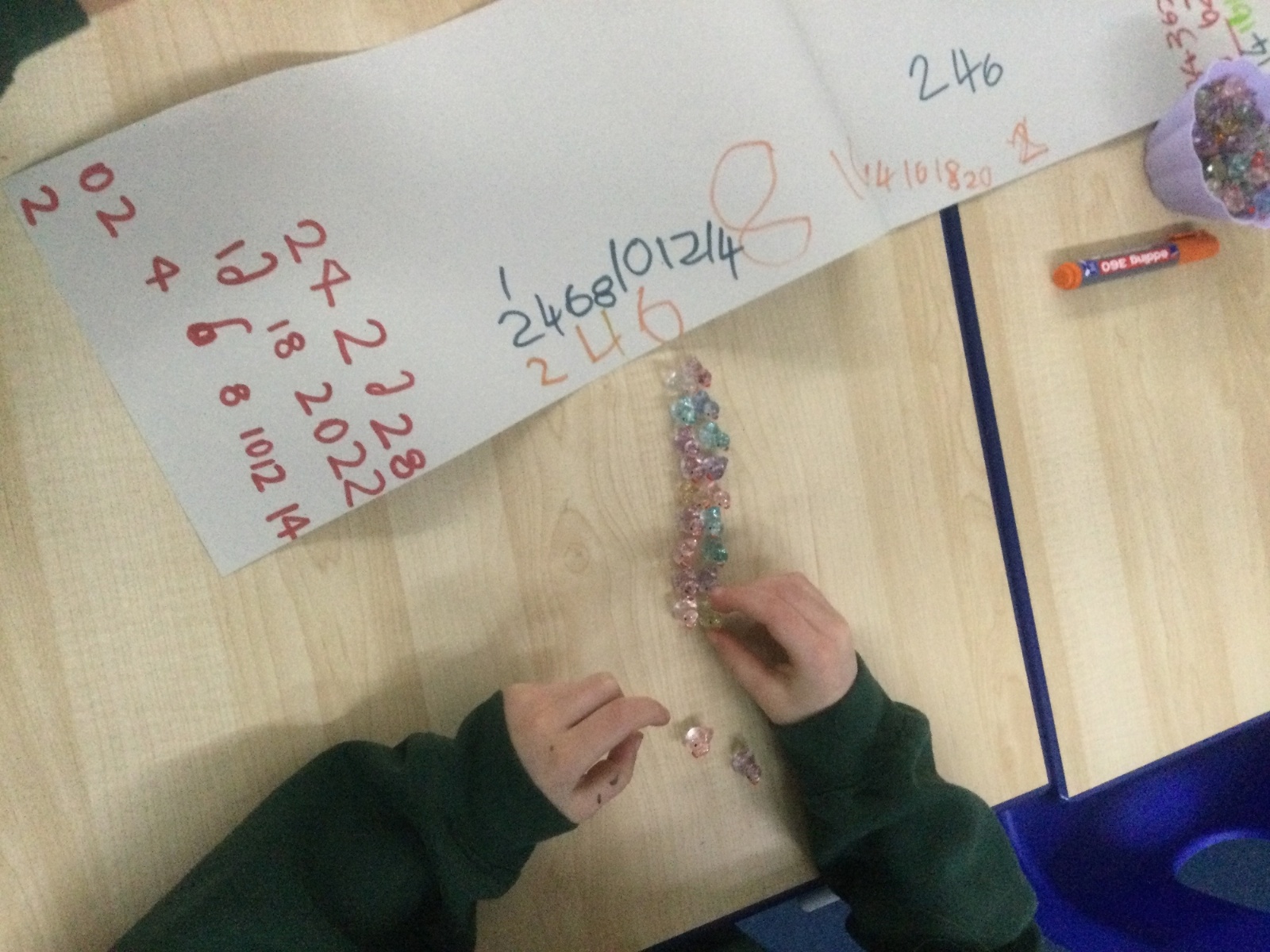 We have been recapping how to count in multiples of 2s in a variety of fun and practical ways.