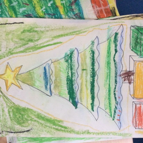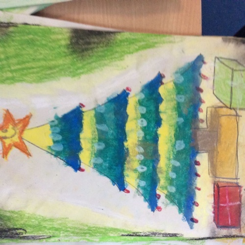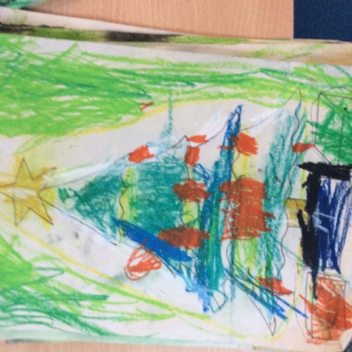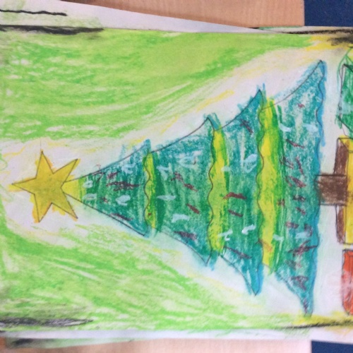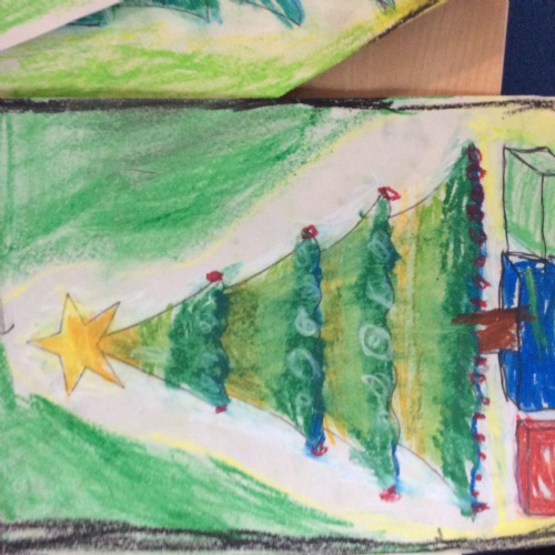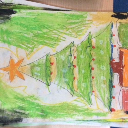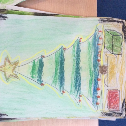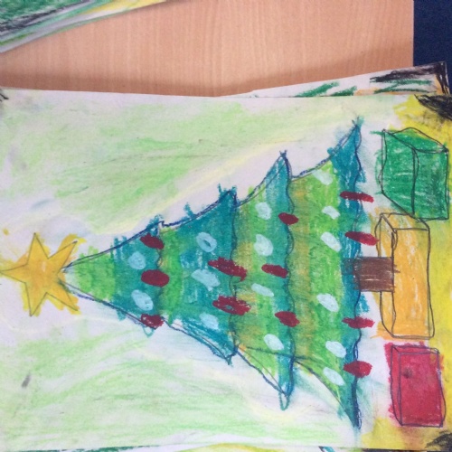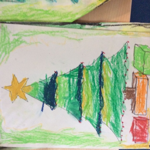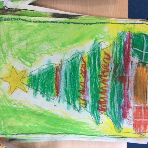 One of our extra art activities was we followed instructions on a YouTube video showing us how to make a Christmas tree out of oil pastels. The children loved airbrushing and blending the colours. It was nice to see the children recall their key vocabulary of art.