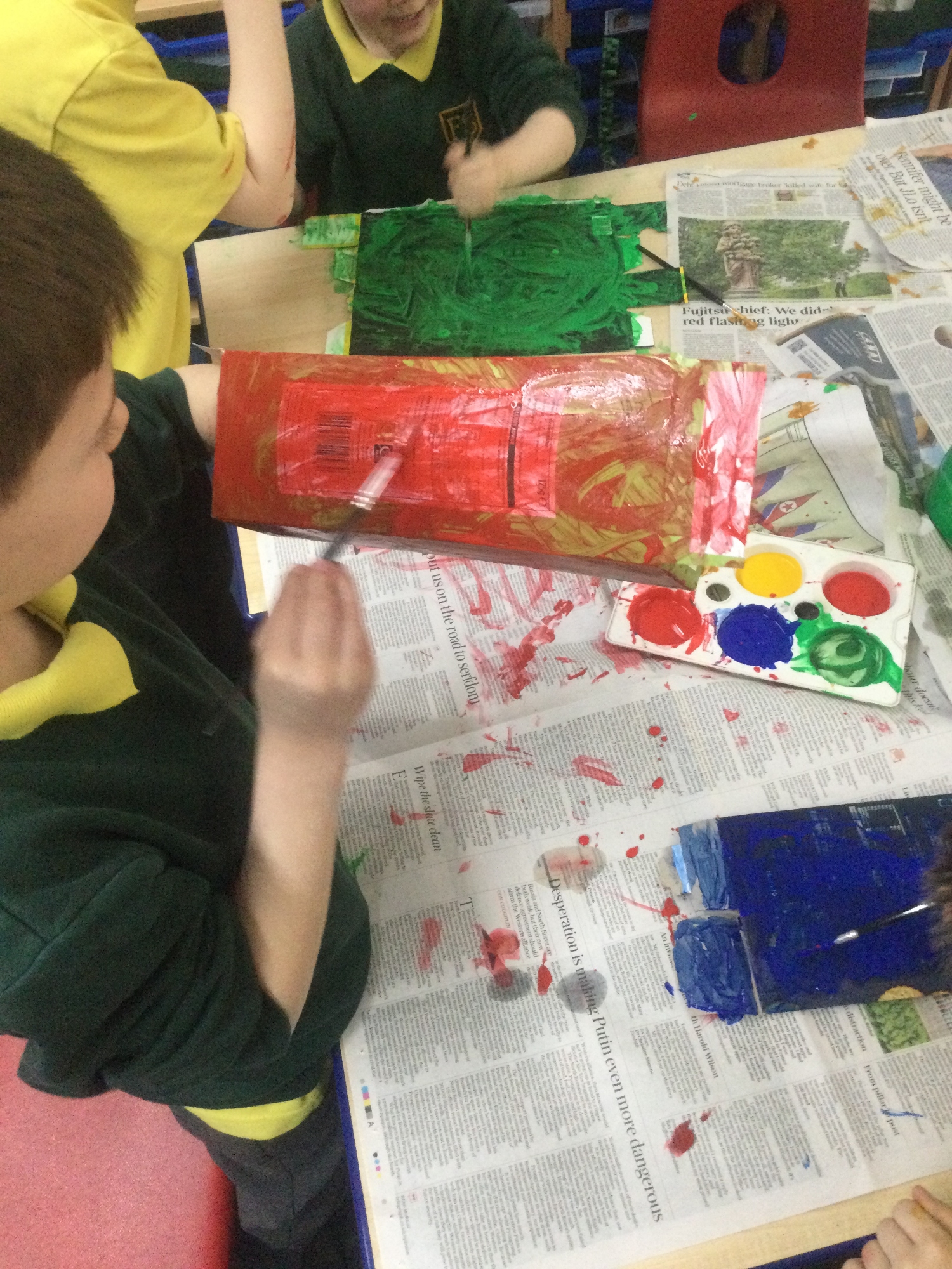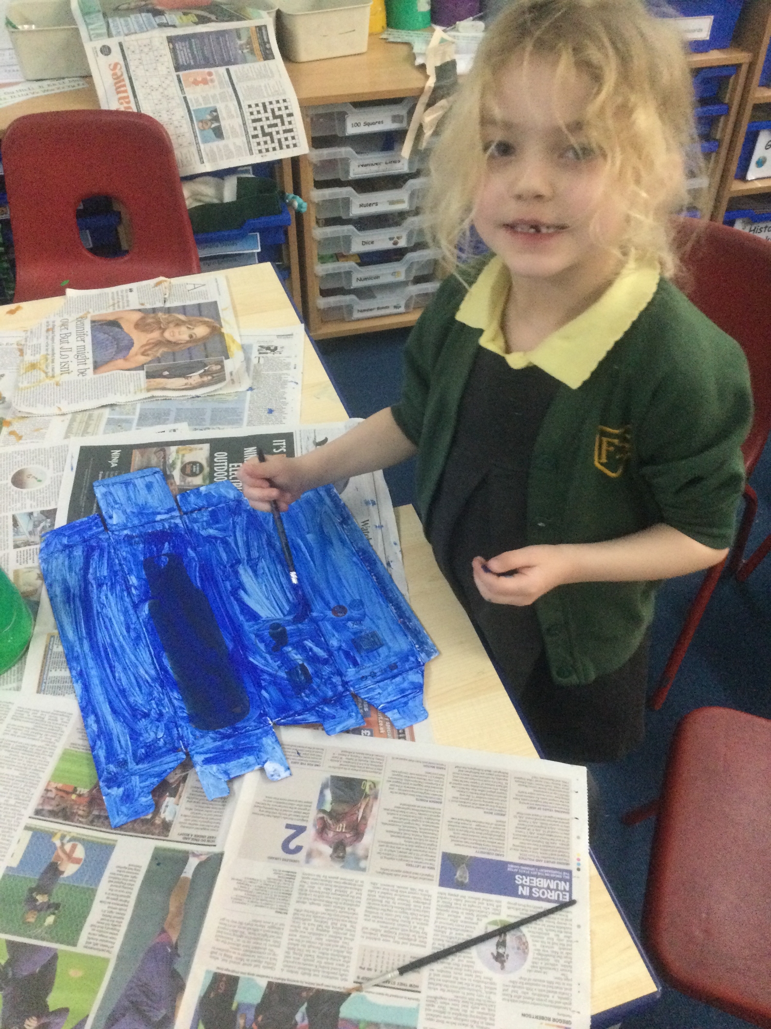 In DT, we begun by practising making hinges for doors and windows which helped us build on our cutting skills. We designed a plan for what our rocket should look like then used cardboard and a 3-d template for the top part of our rocket. The children really enjoyed painting and making their rockets. Afterwards, they evaluated what was good about them and what they would improve.