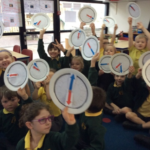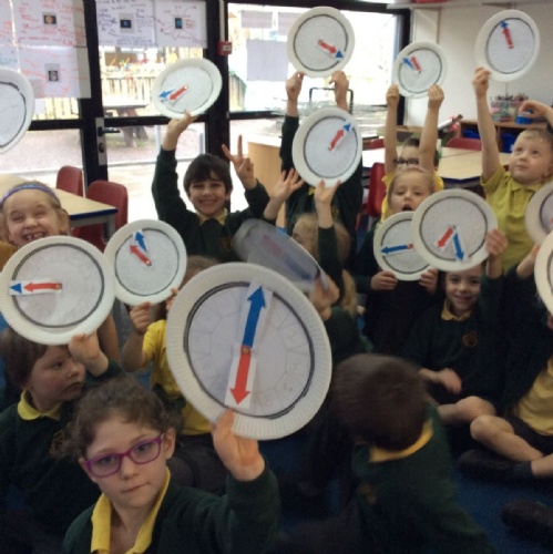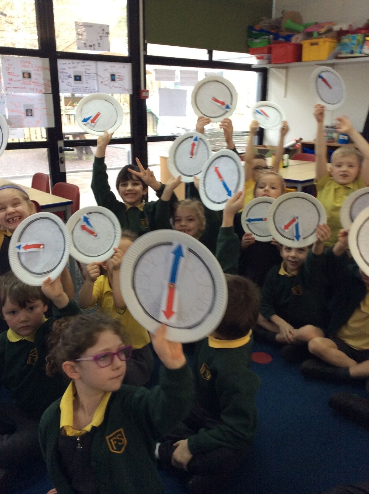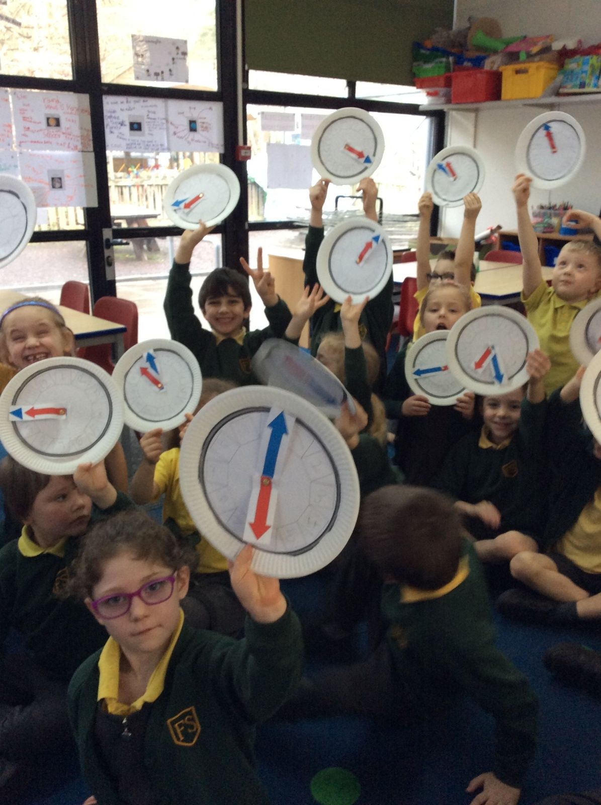 As part of a new maths unit focusing on measurement, time and mass, we made our own clocks. We began by cutting out the template and sticking it onto a paper plate. We wrote out the numbers. This took us some practice as we had to keep the clock still and not turn it as we wrote the numbers. Afterwards, we placed the minute and hand hours on before having a go at exploring our clocks and seeing if we could make what time it was now.