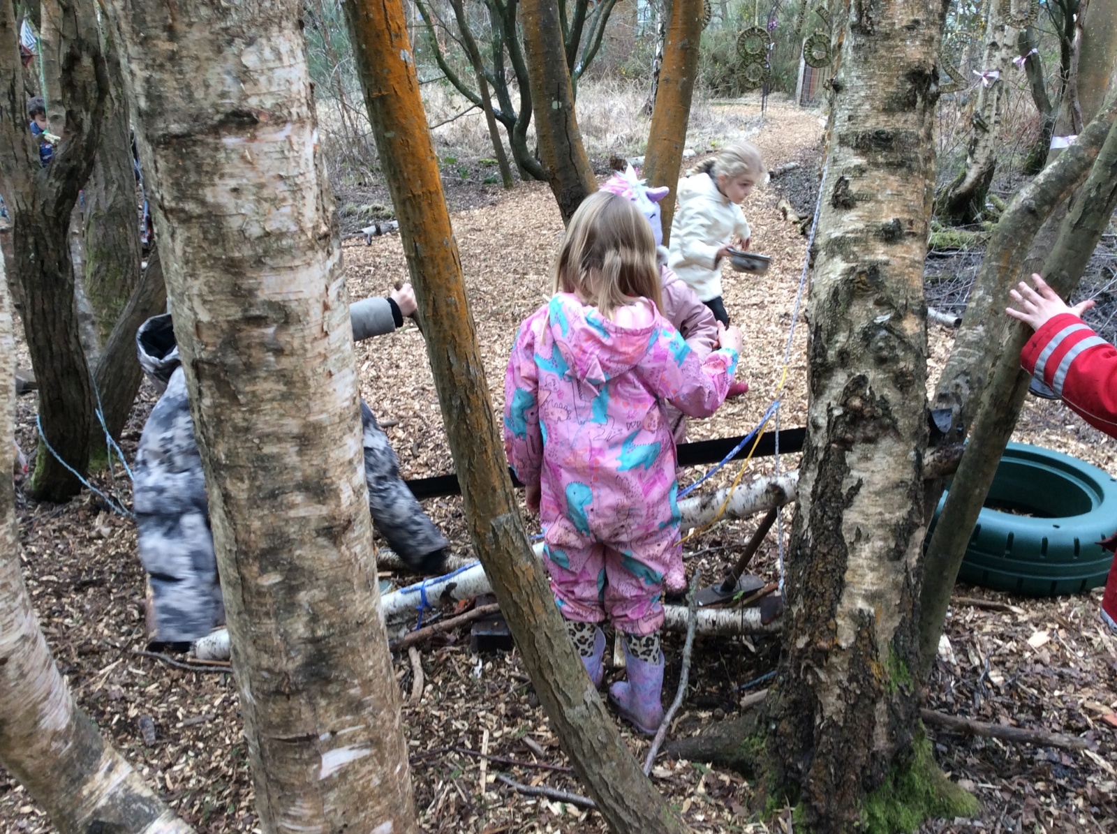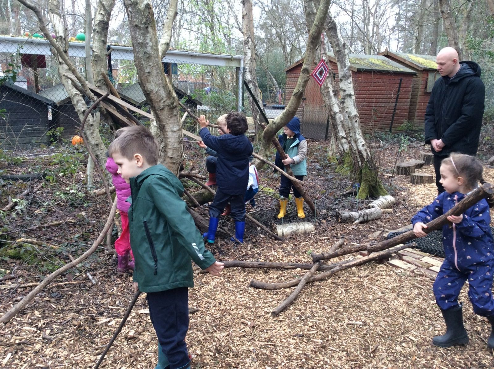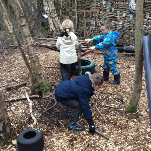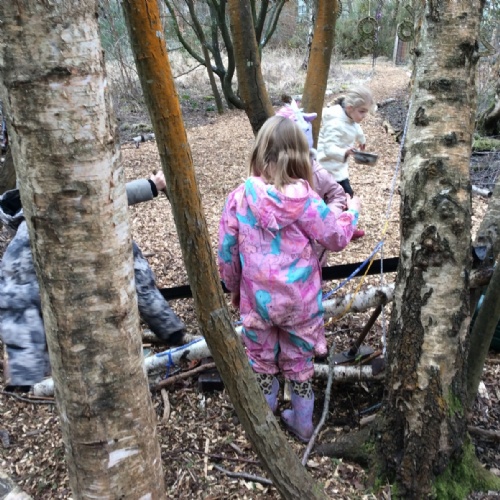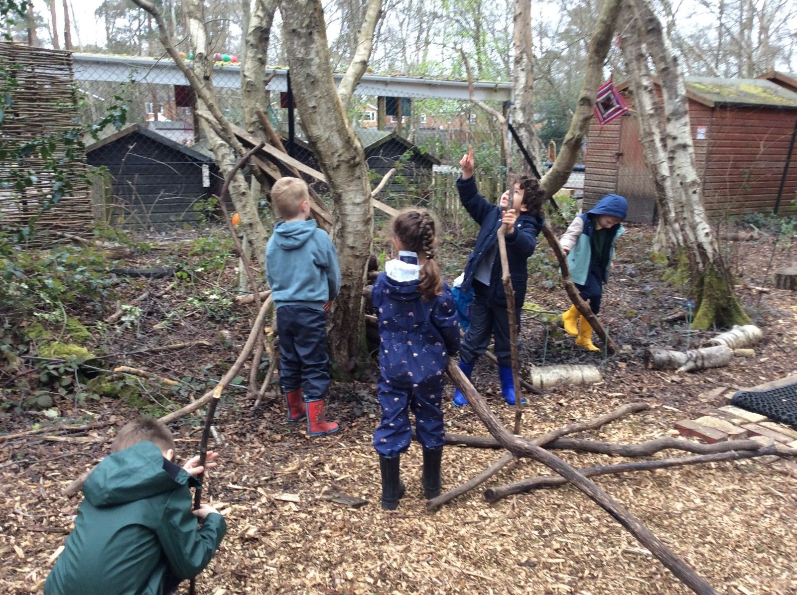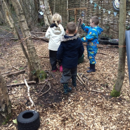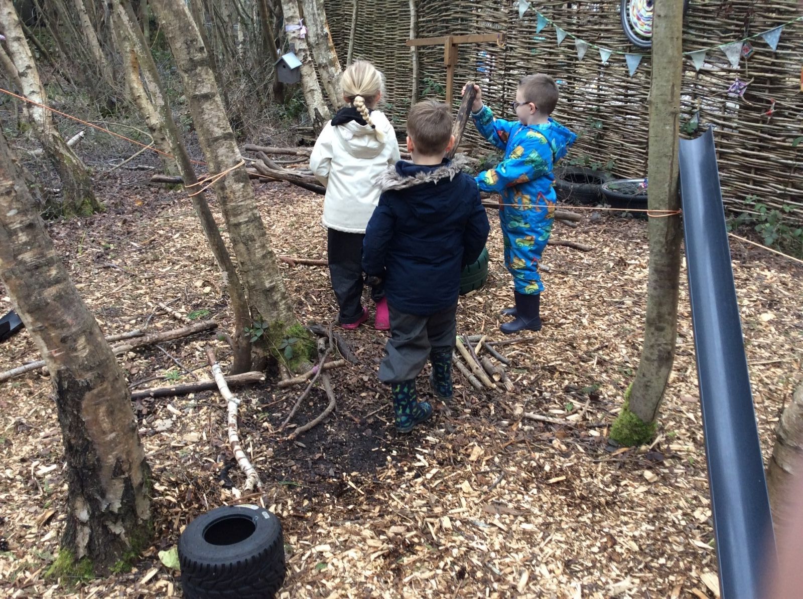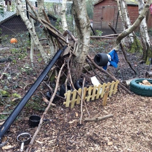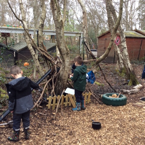 This half term, we begun our outdoor learning. This will happen once a week. The children have a chance to explore and engage with nature. Outdoor Learning also provides opportunities for Learning through Play to embed a range of skills children will need for later life. We have been identifying the trees and having a competition to build the den for some fairies.