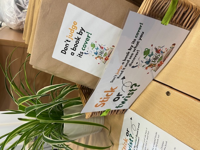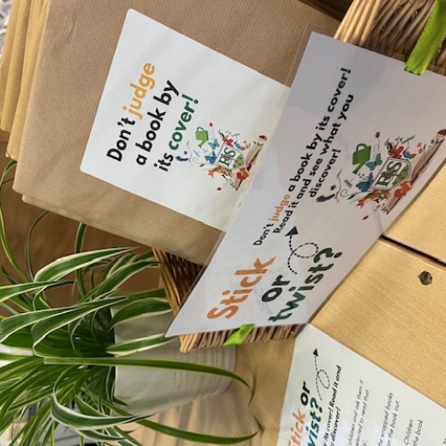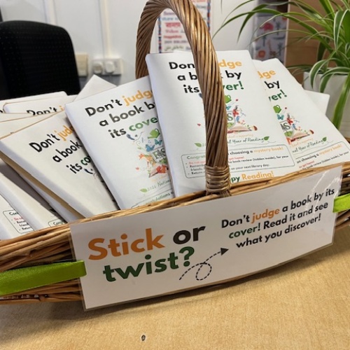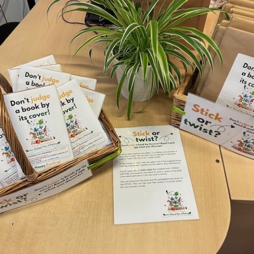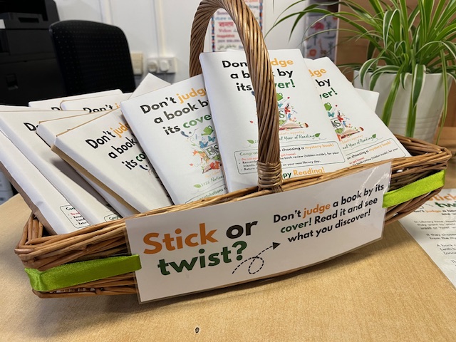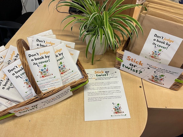 During library sessions, children can choose to “stick” with their selected book or “twist” and take home a mystery book wrapped in brown paper as part of our Don’t Judge a Book by its Cover initiative. Inside each mystery book is a short book review for the children to complete and return to school. These reviews will be displayed to inspire other children to try new books! Every child who takes part will receive a special reading sticker to celebrate their reading journey.