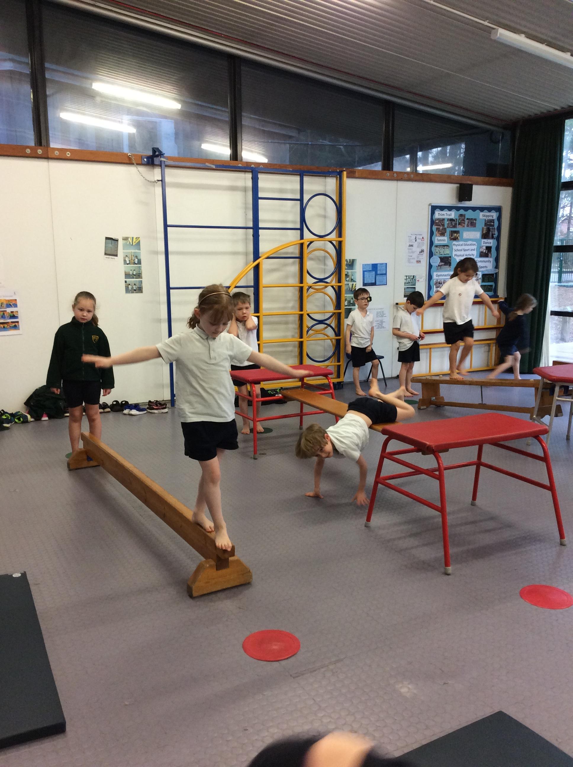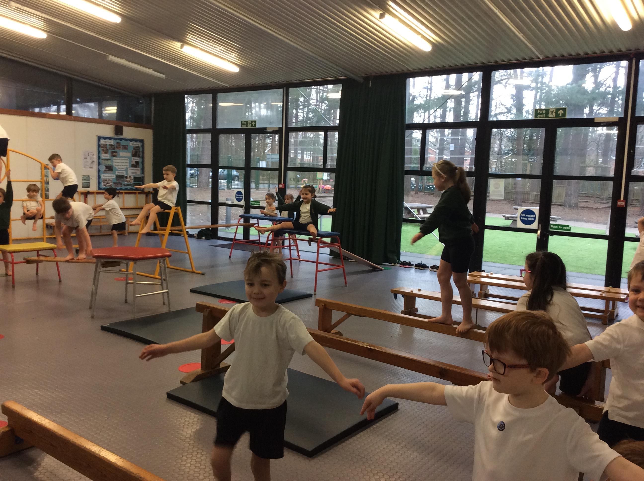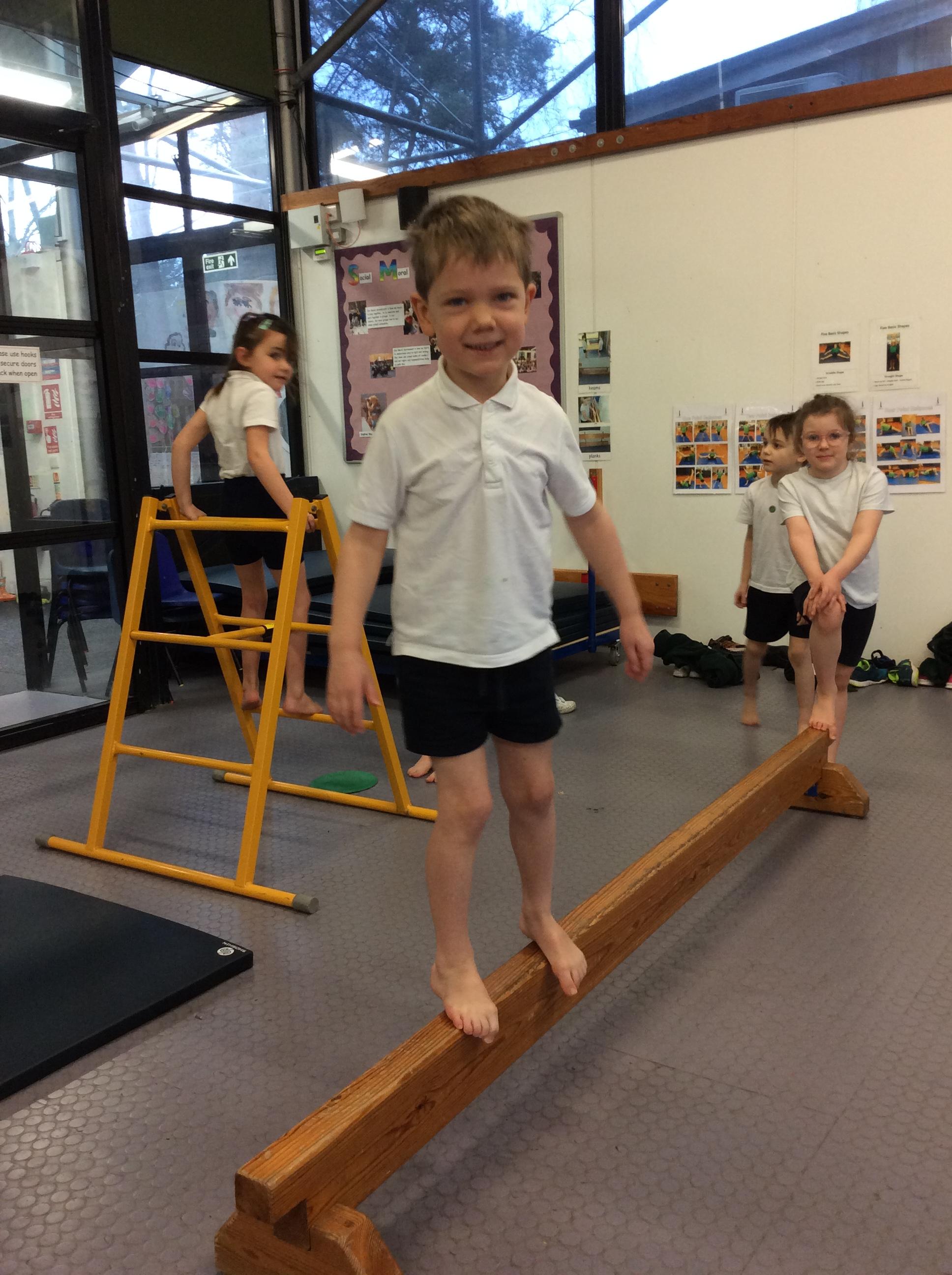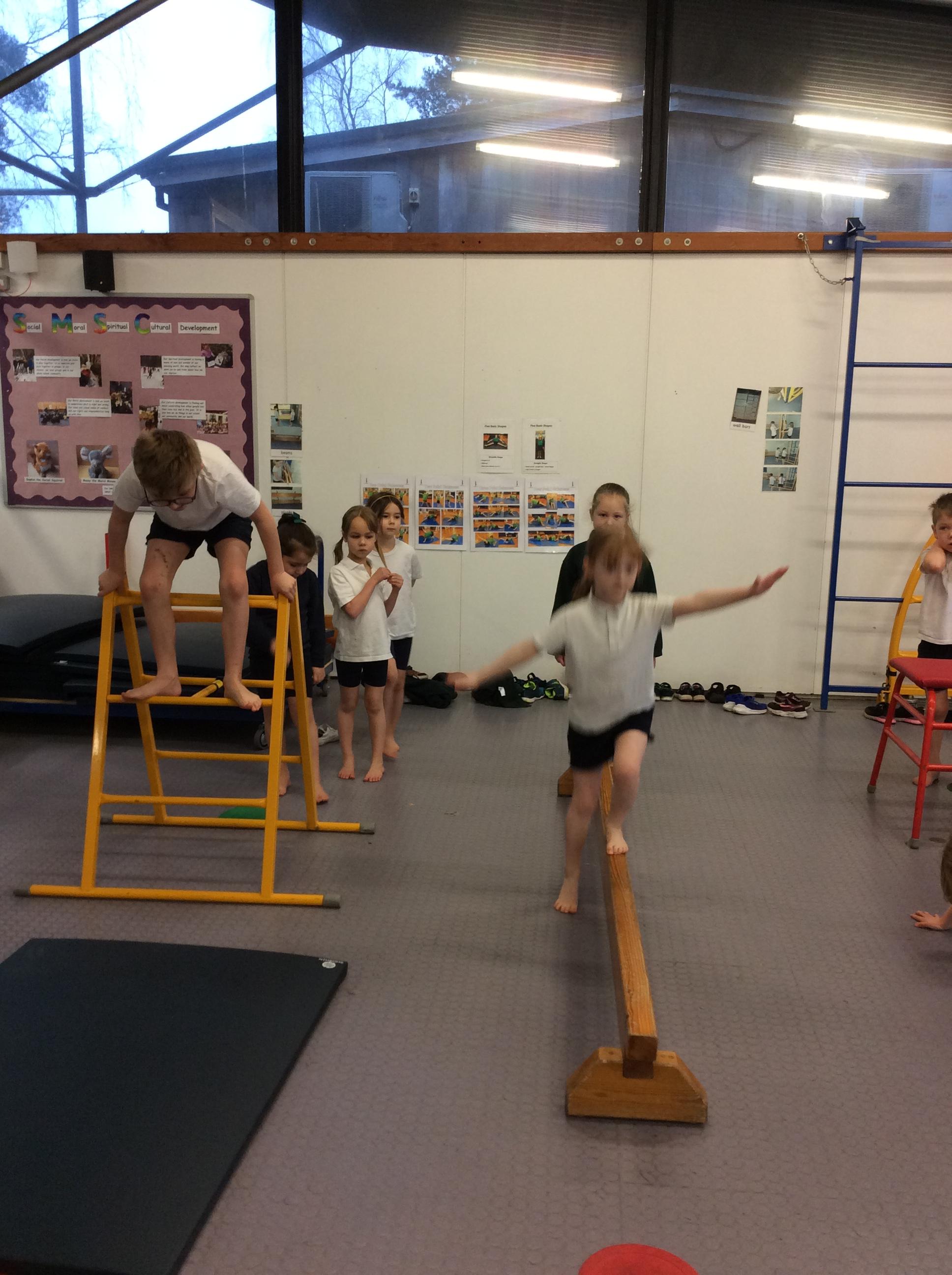 During indoor PE sessions, gymnastics and dance are taught by class teachers. Children follow a clearly planned gymnastics session where they are given the opportunity to copy and perform balances and shapes. They create sequences of movements and share these with their peers who share their successes.