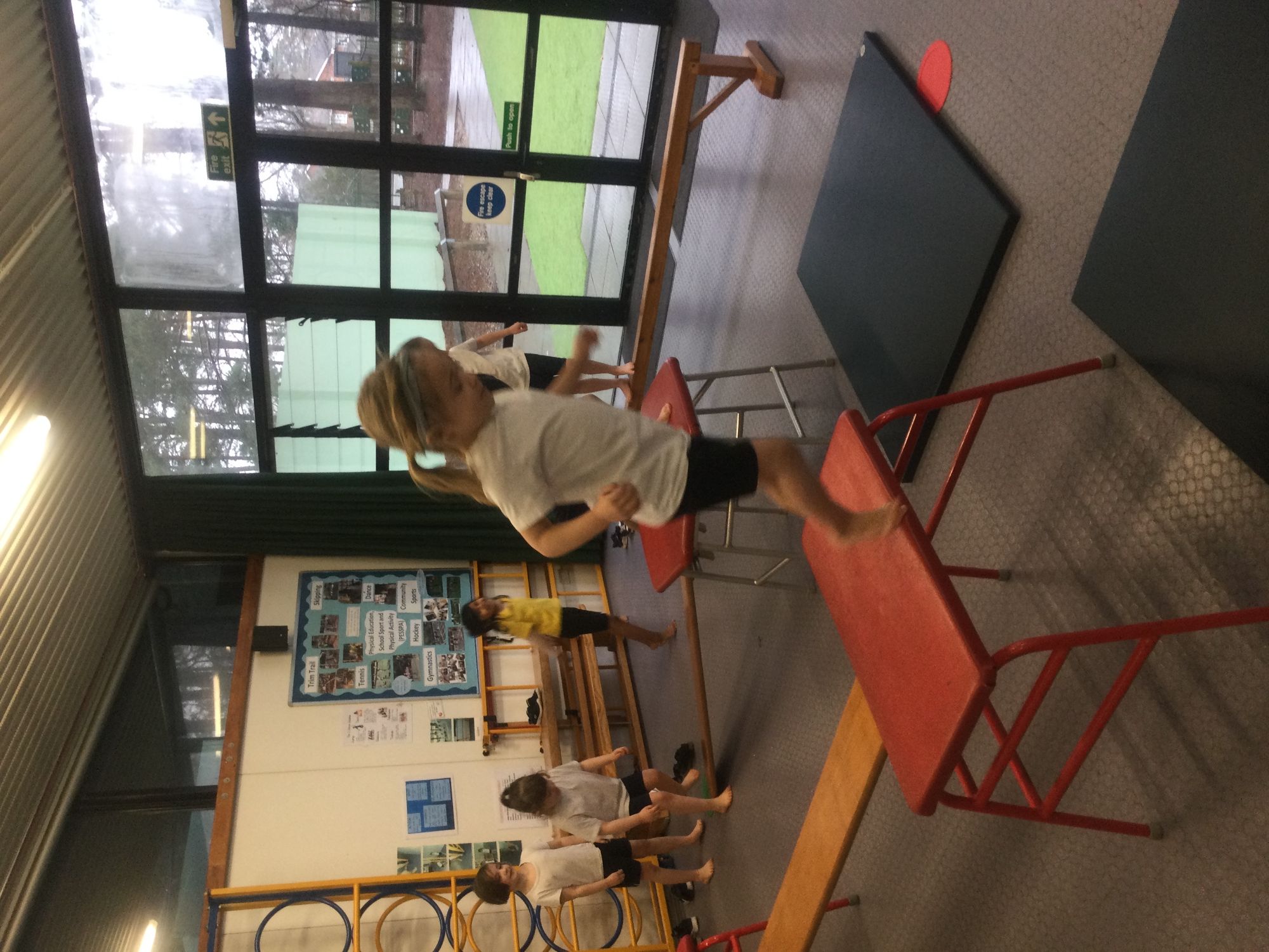 In Gymnastics this term, we are using the apparatus. We have been thinking about travelling in different ways and have learnt how to jump carefully off the apparatus.
