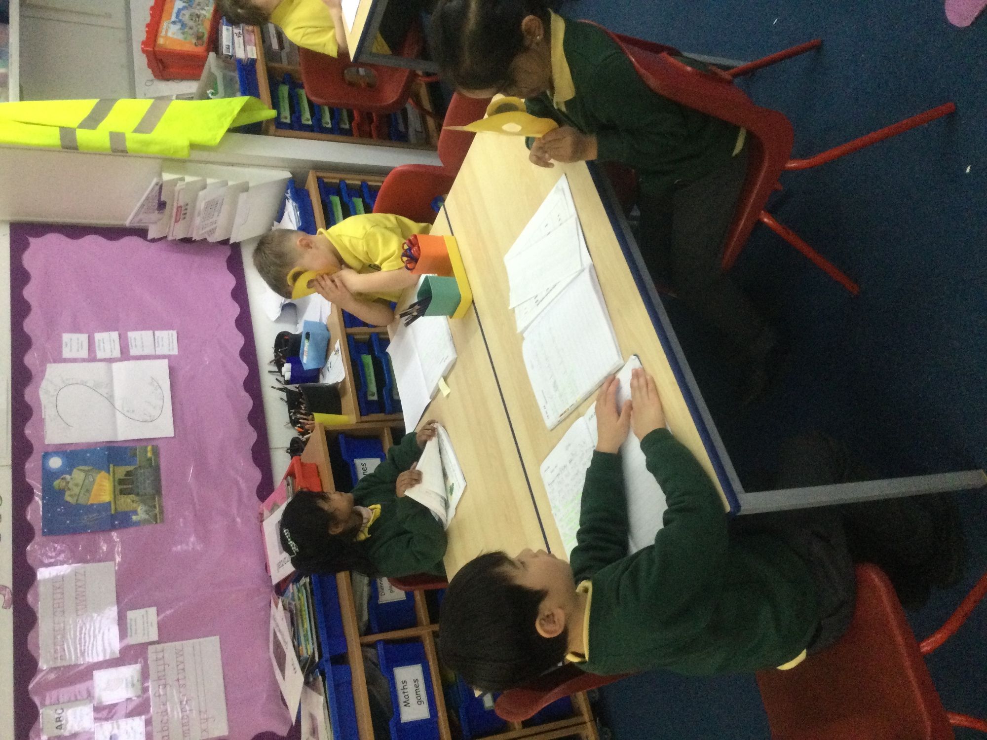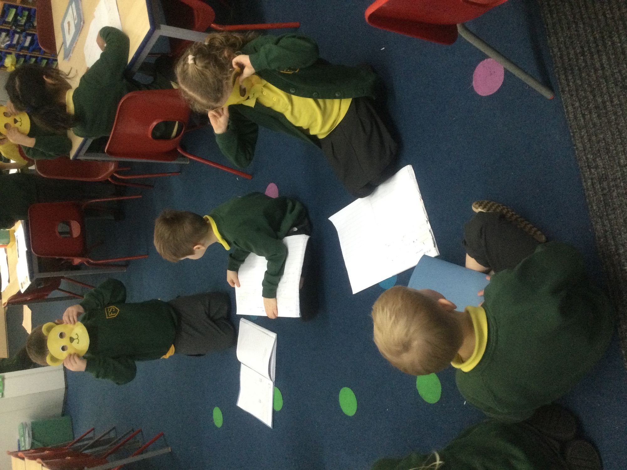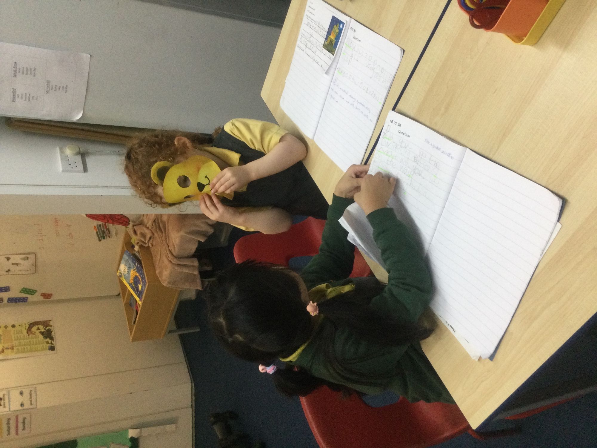 In English, we are working with the story "Whatever Next". We learnt about different question words and how to write questions. We then wrote 3 questions that we would like to ask Baby Bear, who is the main character in the story. We then role - played being Baby Bear and had a go at answering our partners questions.