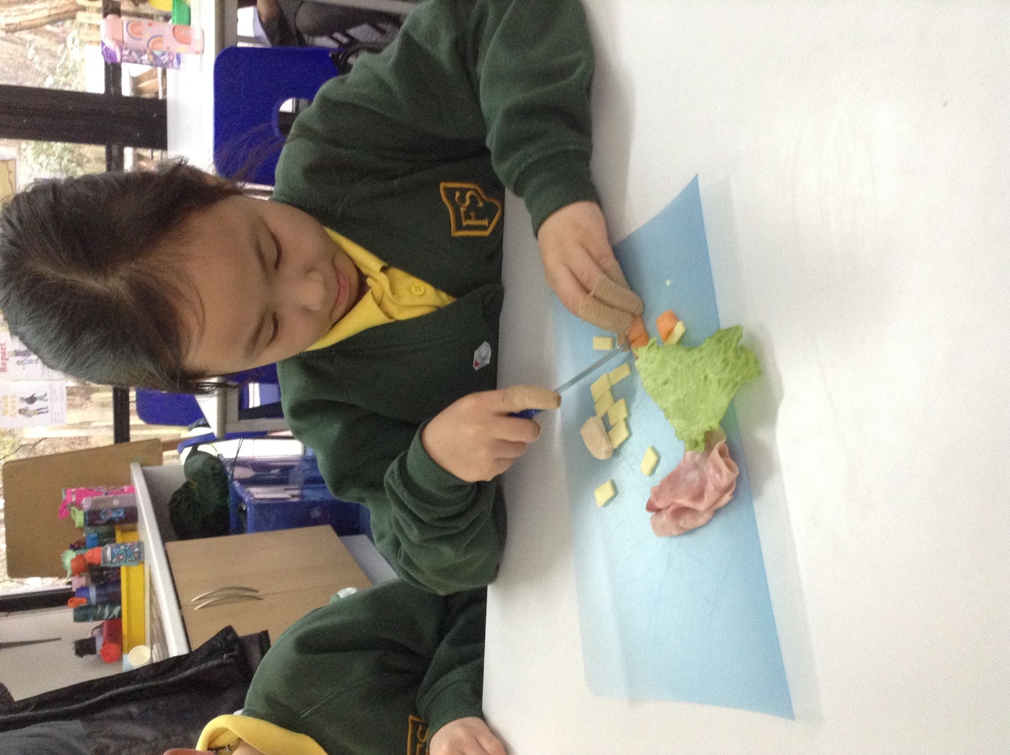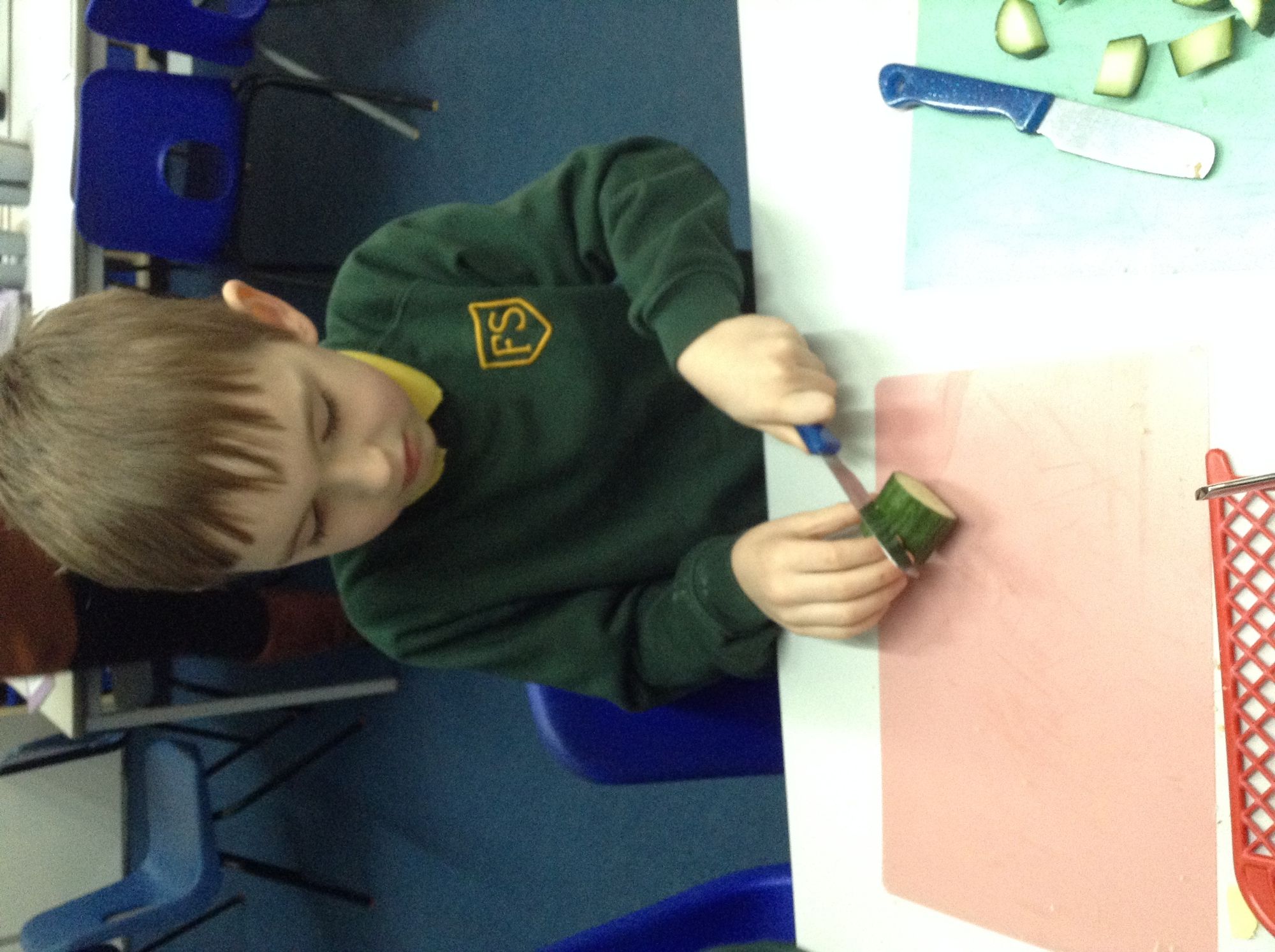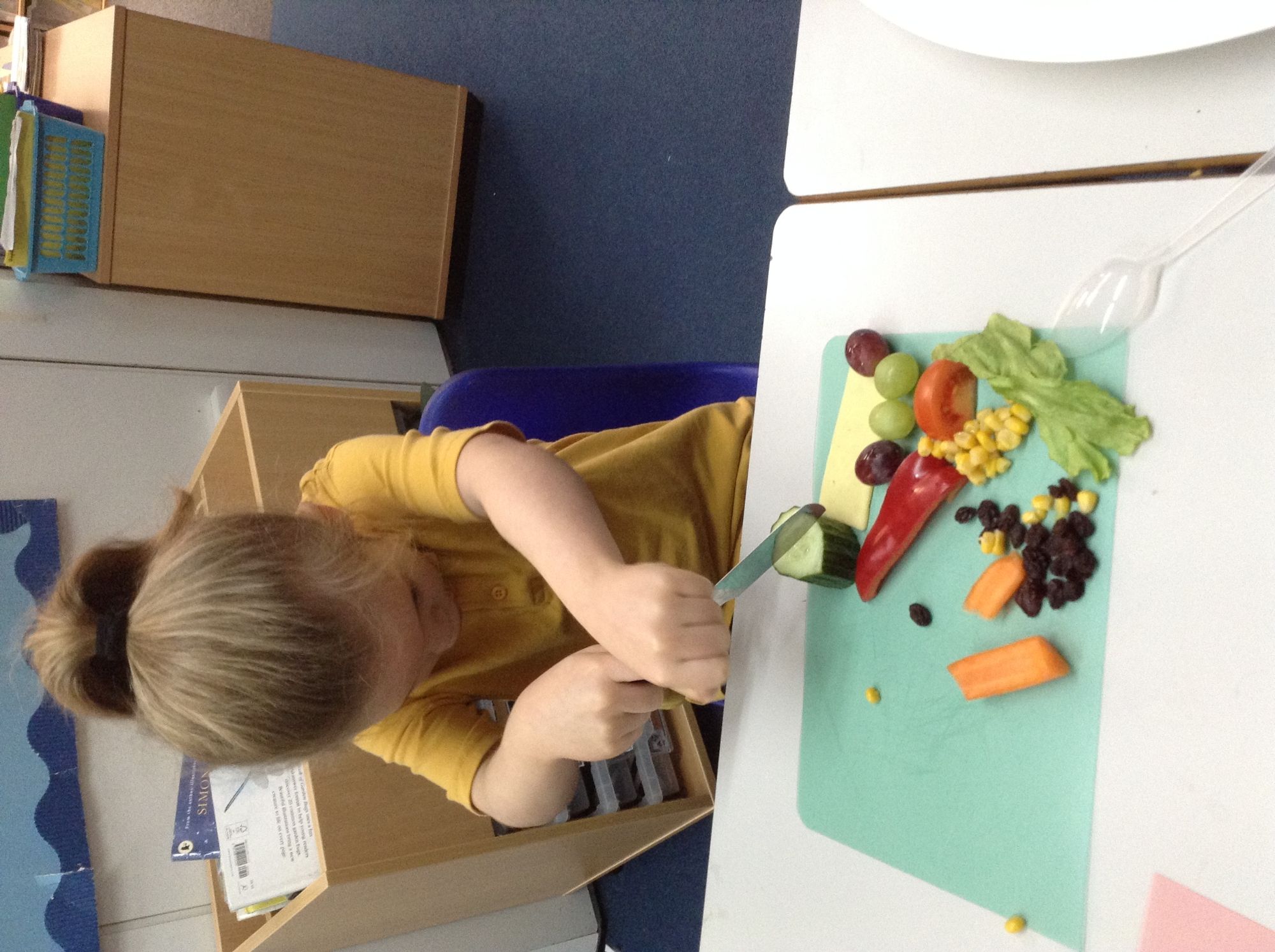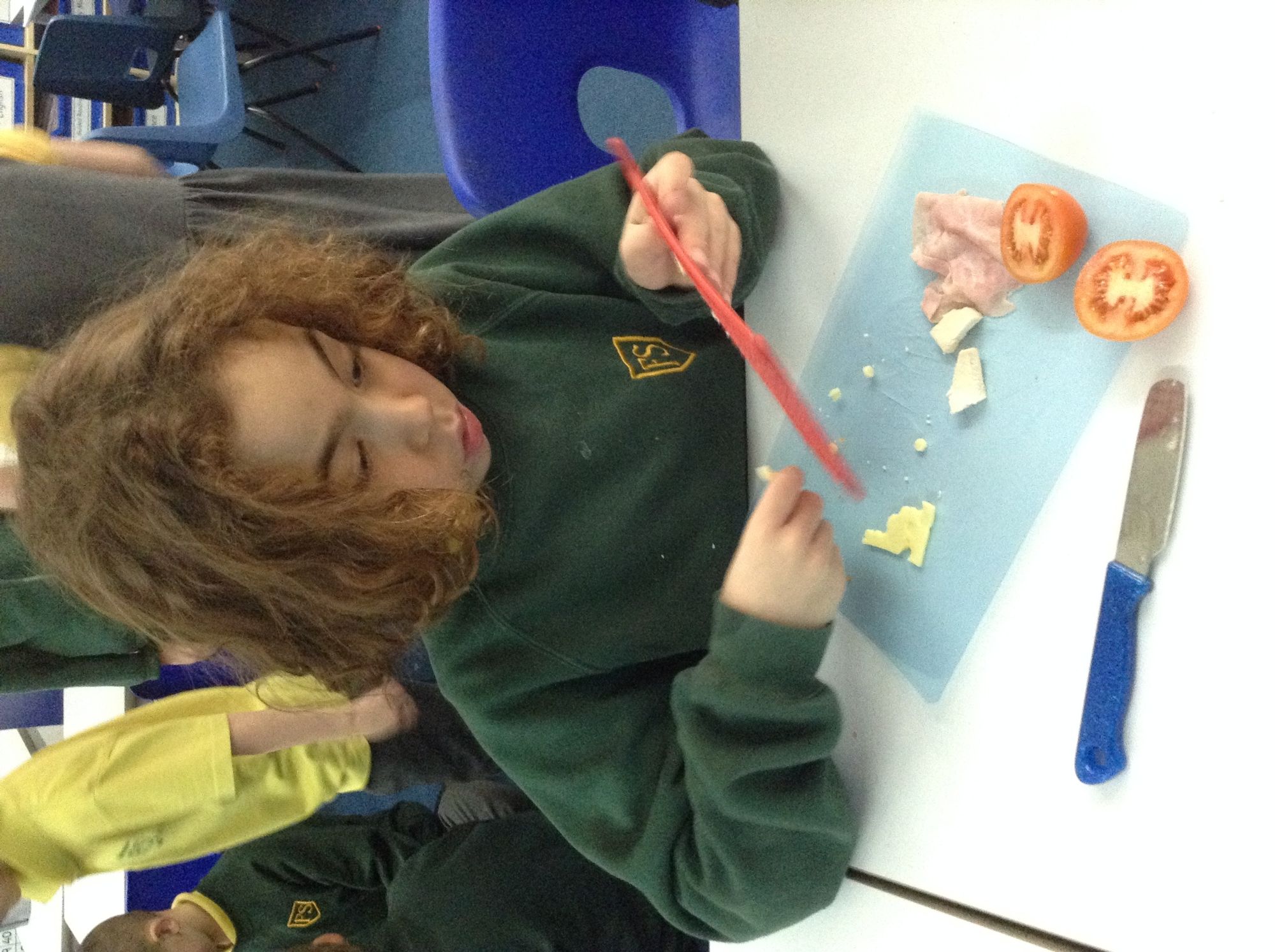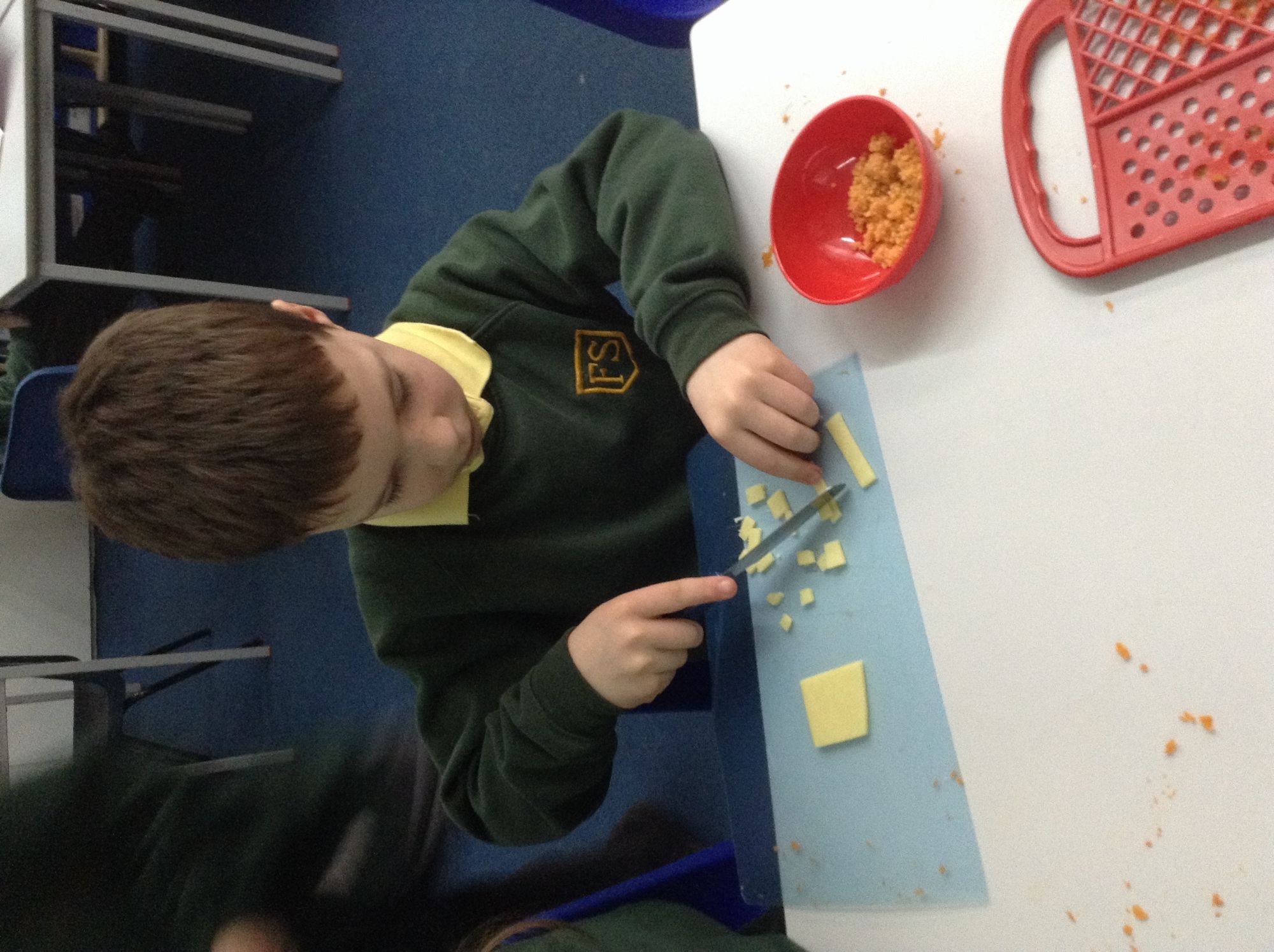 In DT, the children made couscous salad and used tools and equipment to perform practical tasks, chopping and mixing.