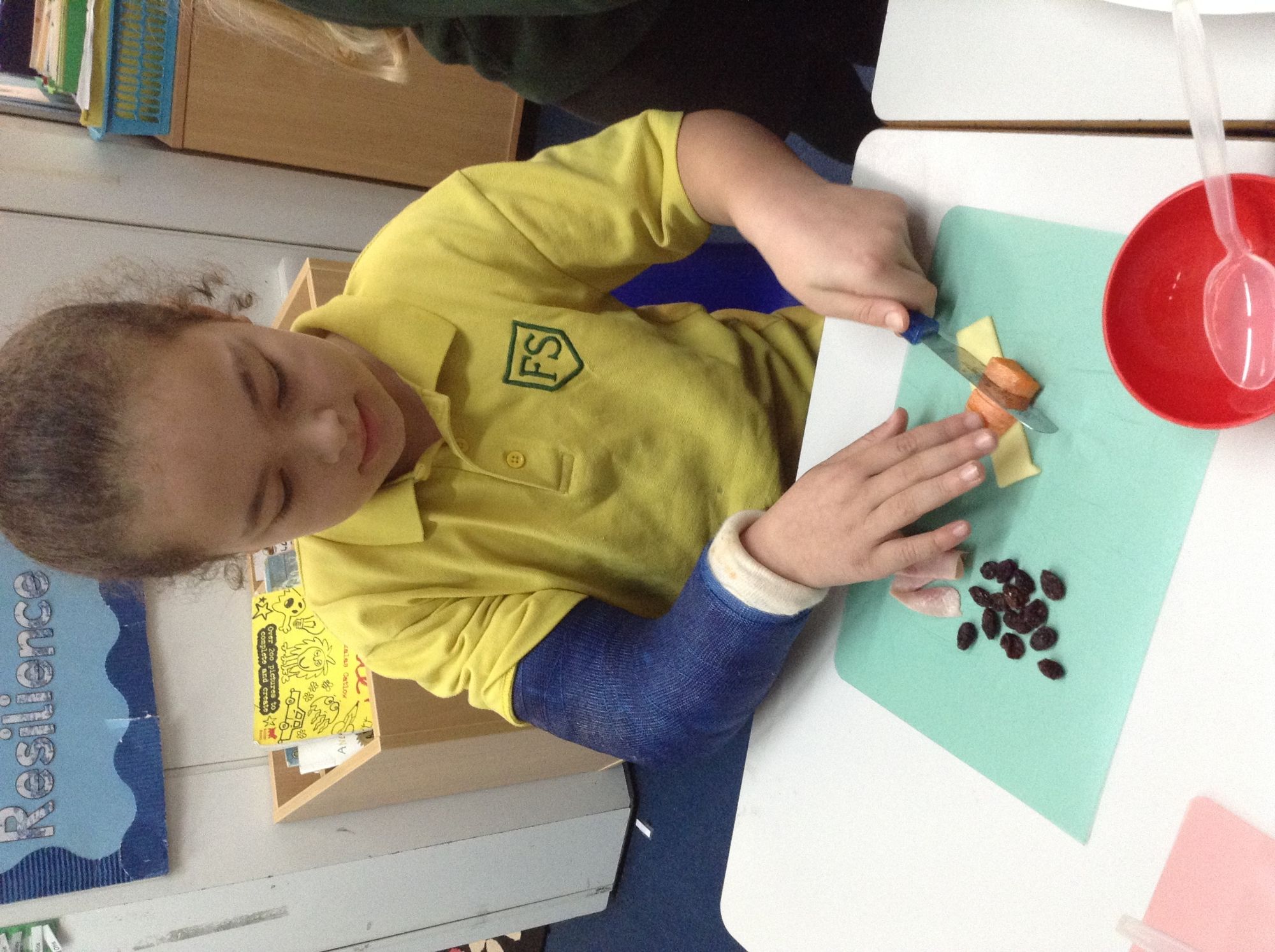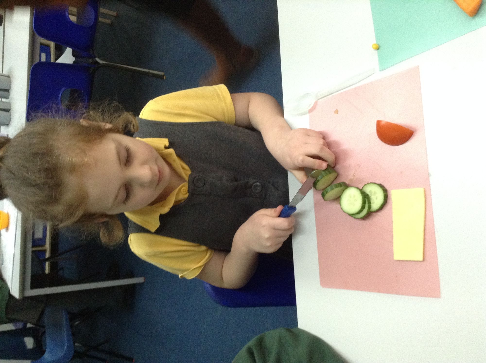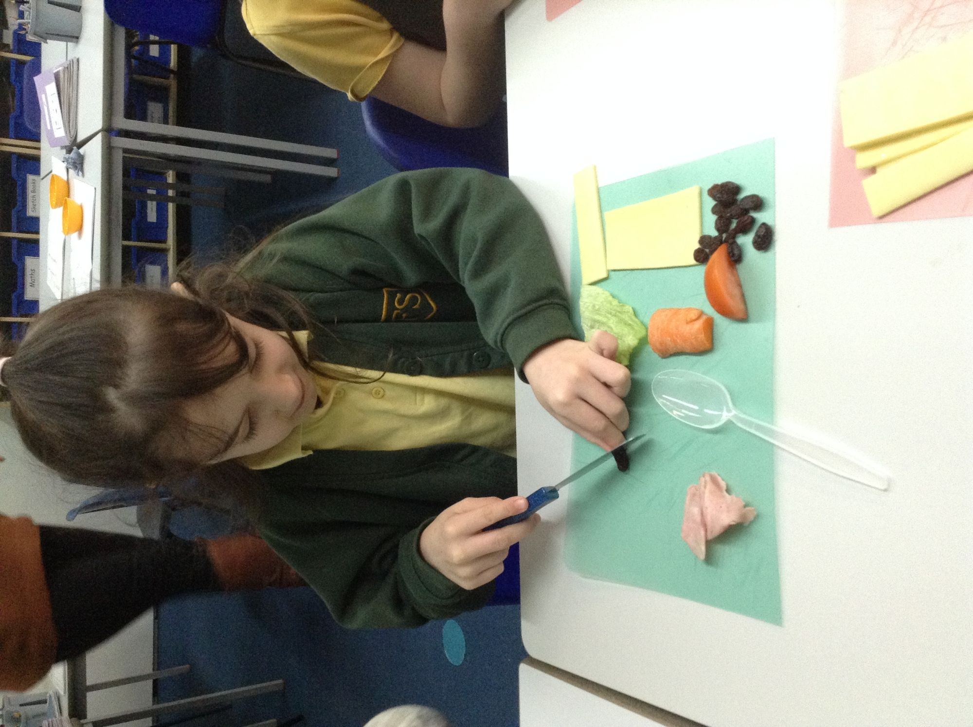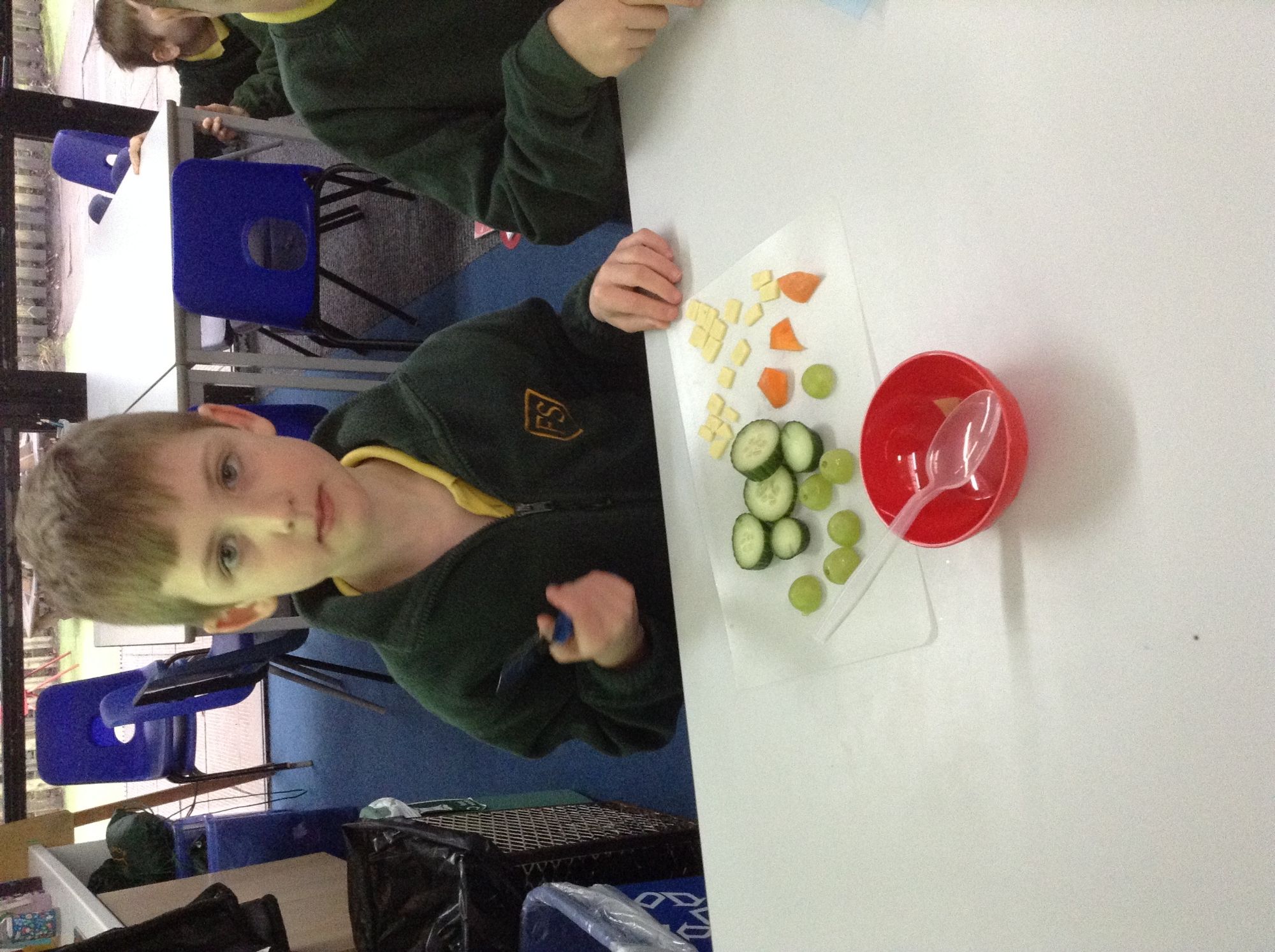 In DT, the children made couscous salad and used tools and equipment to perform practical tasks, chopping and mixing.