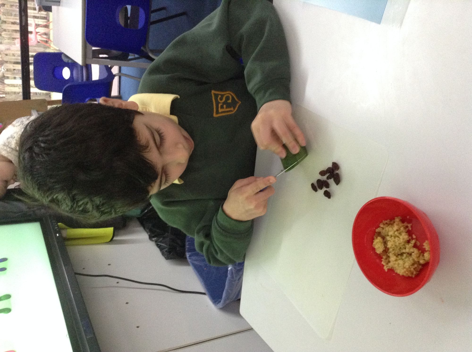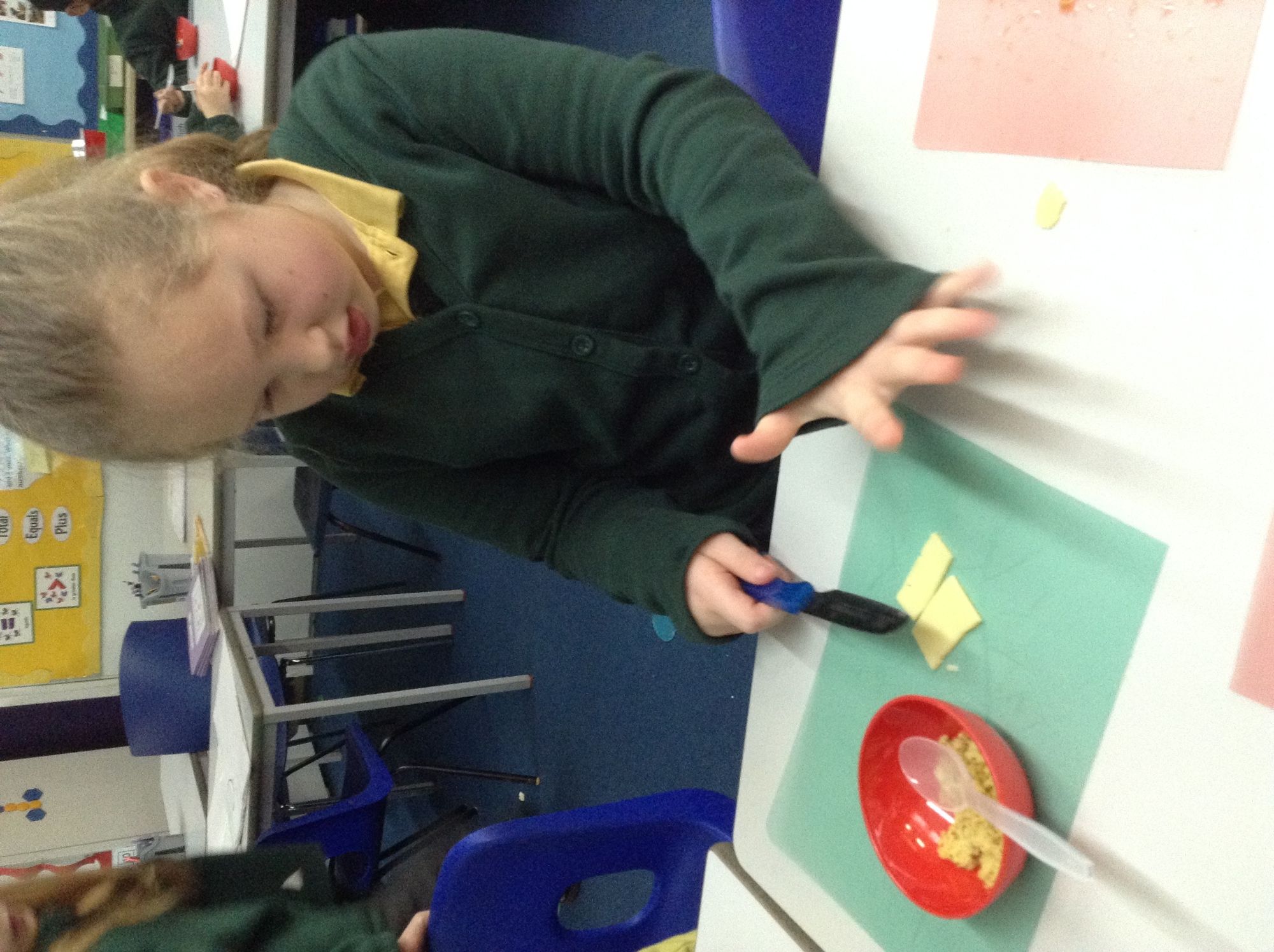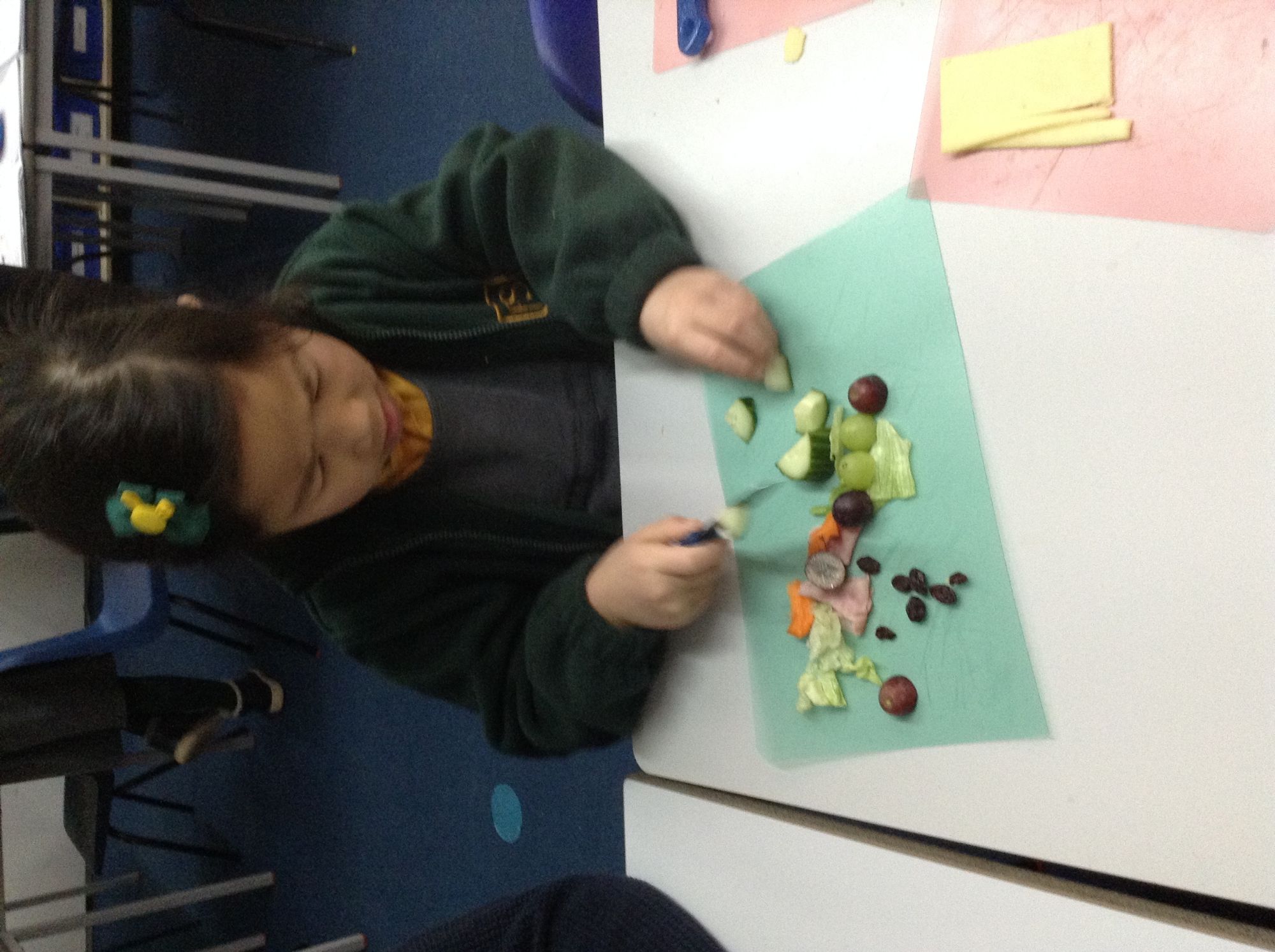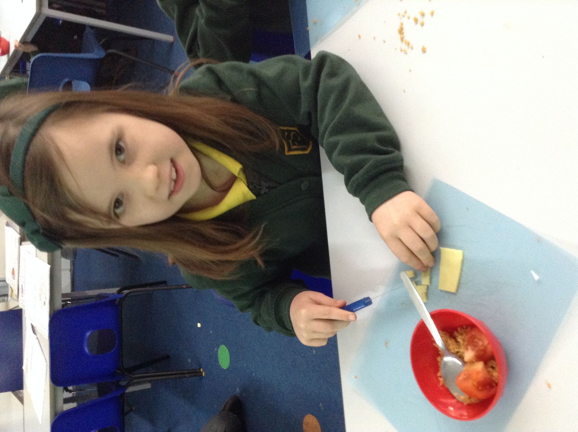 In DT, the children made couscous salad and used tools and equipment to perform practical tasks, chopping and mixing.