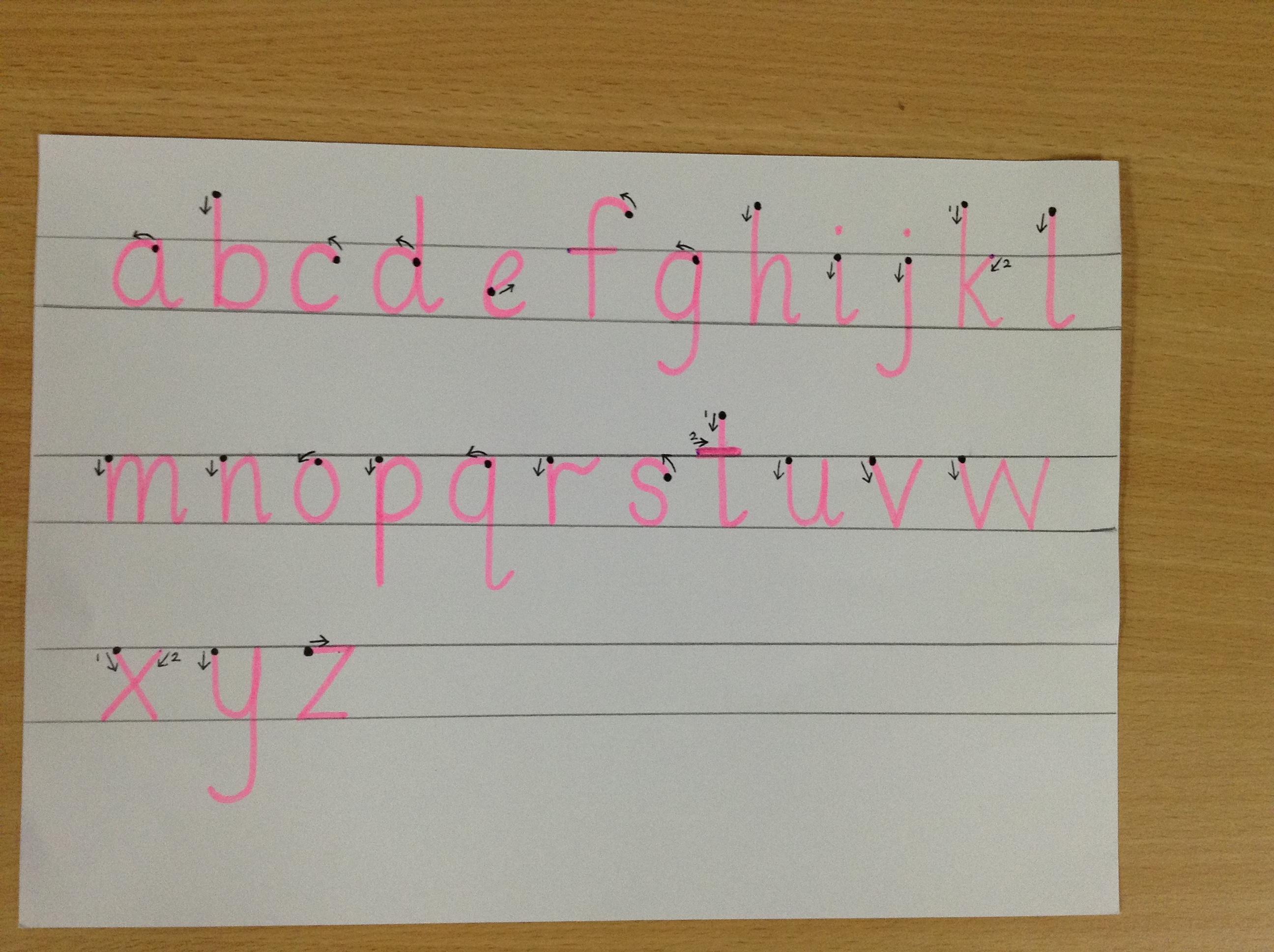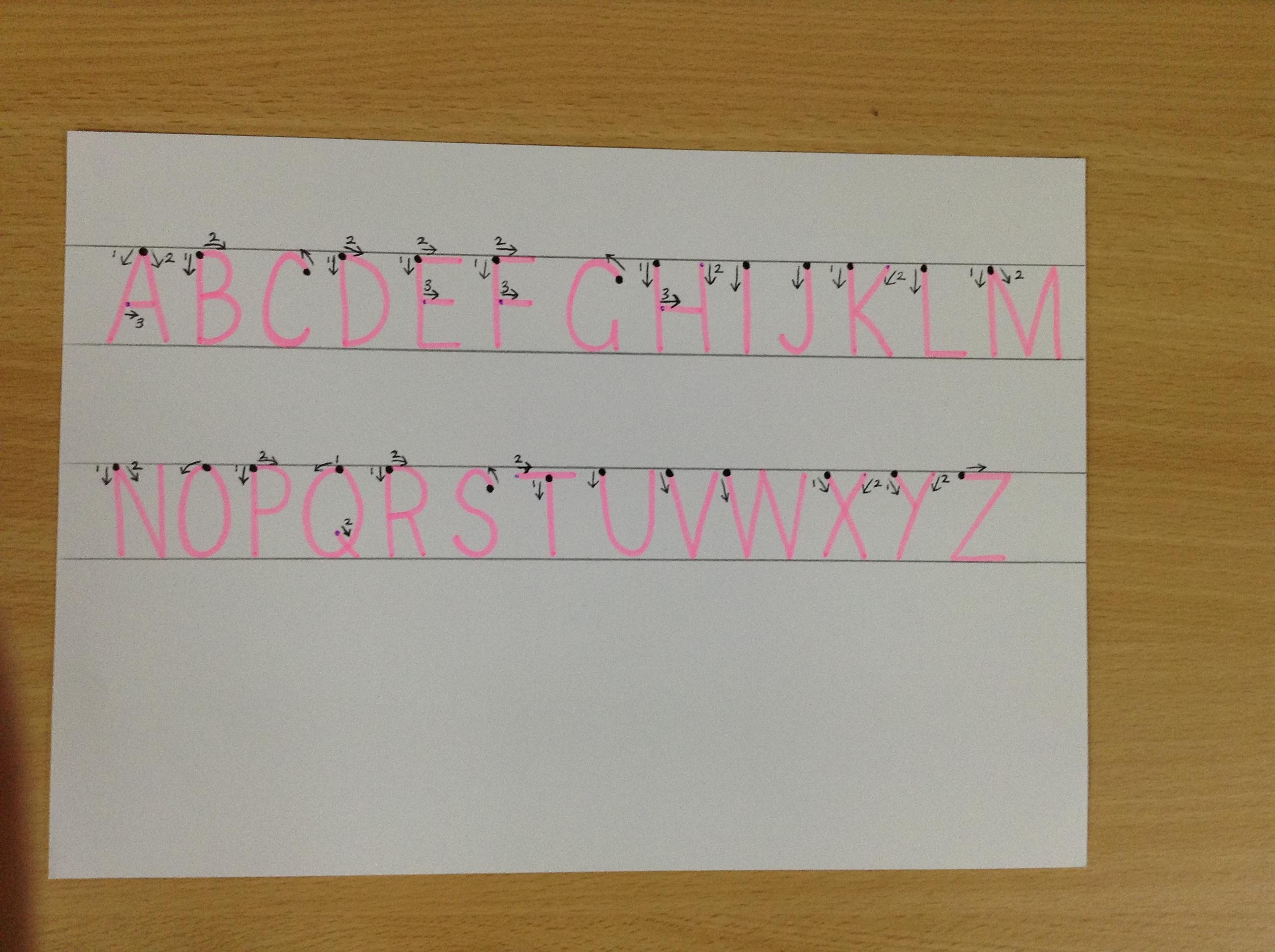 • capital letters start at the top and go down first, the pencil is then taken off the paper to add the horizontal lines